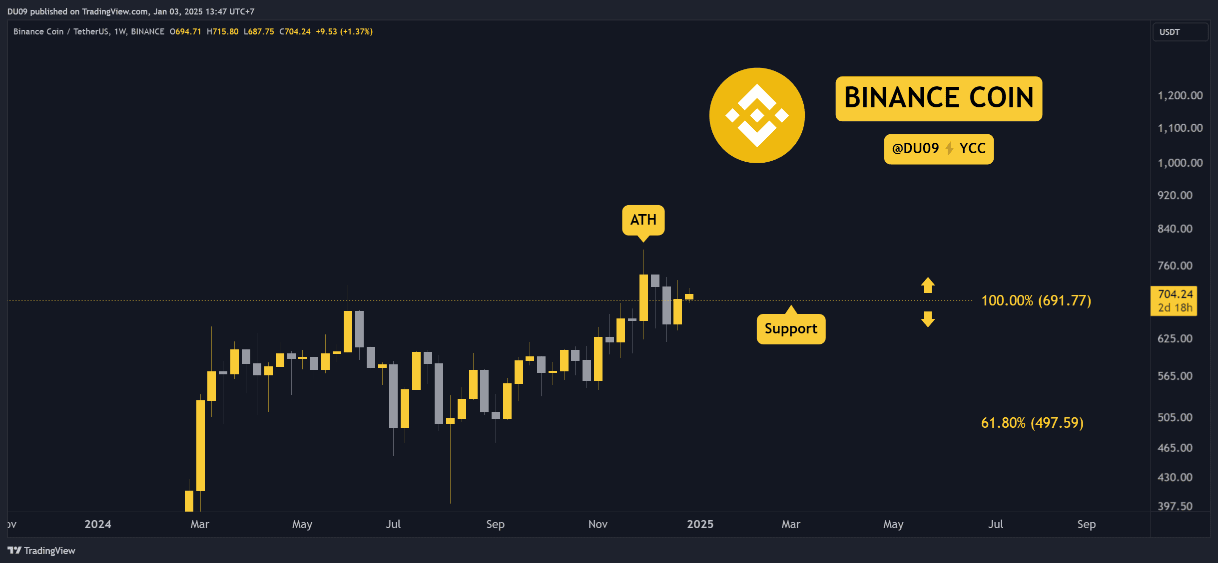 Looking ahead, Binance Coin has a real chance to reach $1,000 in 2025. The price needs to increase by 40% to reach that level. This appears possible if the market remains bullish in the months to come.
