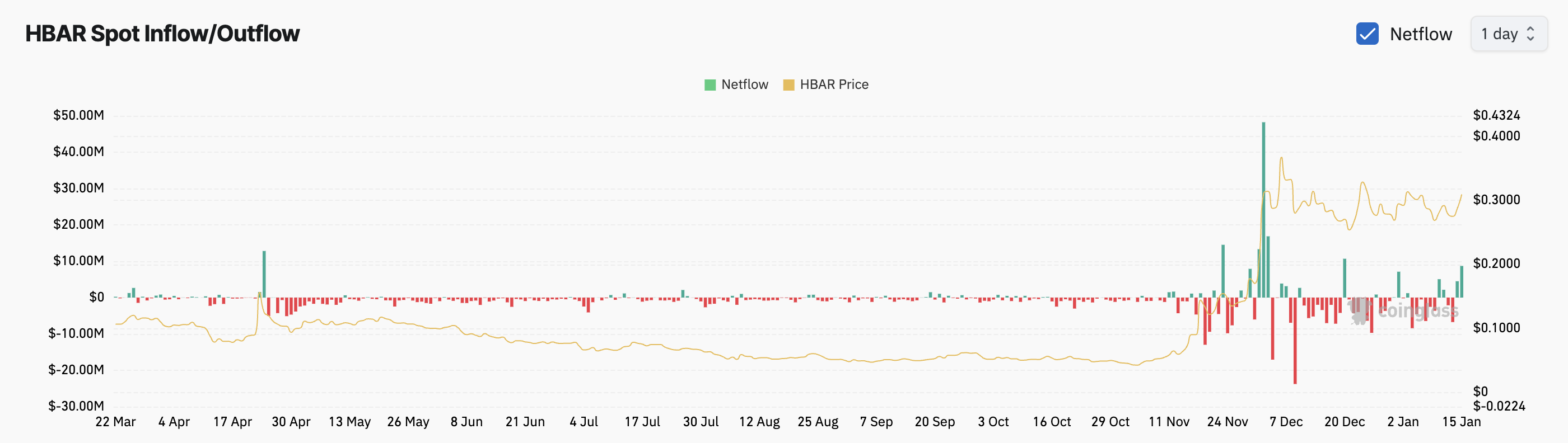 This price rally is driven by the spike in HBAR’s spot inflow, which is currently at its highest since December 19. The heightened trading activity is attributable to the anticipation around Hedera’s mainnet upgrade to version 0.57, scheduled for later today.