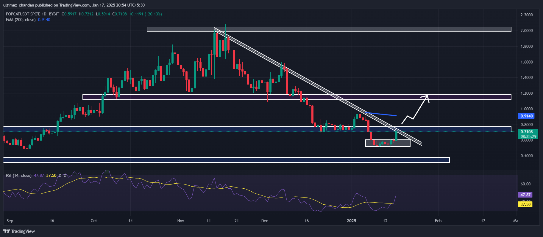 The sentiment across the cryptocurrency landscape seems to be shifting. Amid this, Popcat (POPCAT), the popular Solana-based meme coin, is poised for a massive upside rally. On January 17, 2025, POPCAT reversed its continuous price decline, gaining 22% after experiencing a 75% drop over the past two months.