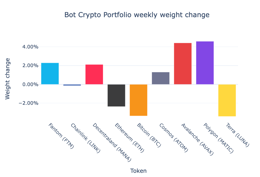 Polkadot, AVAX and Polygon were increased. The Bot prefers/likes the last two.”