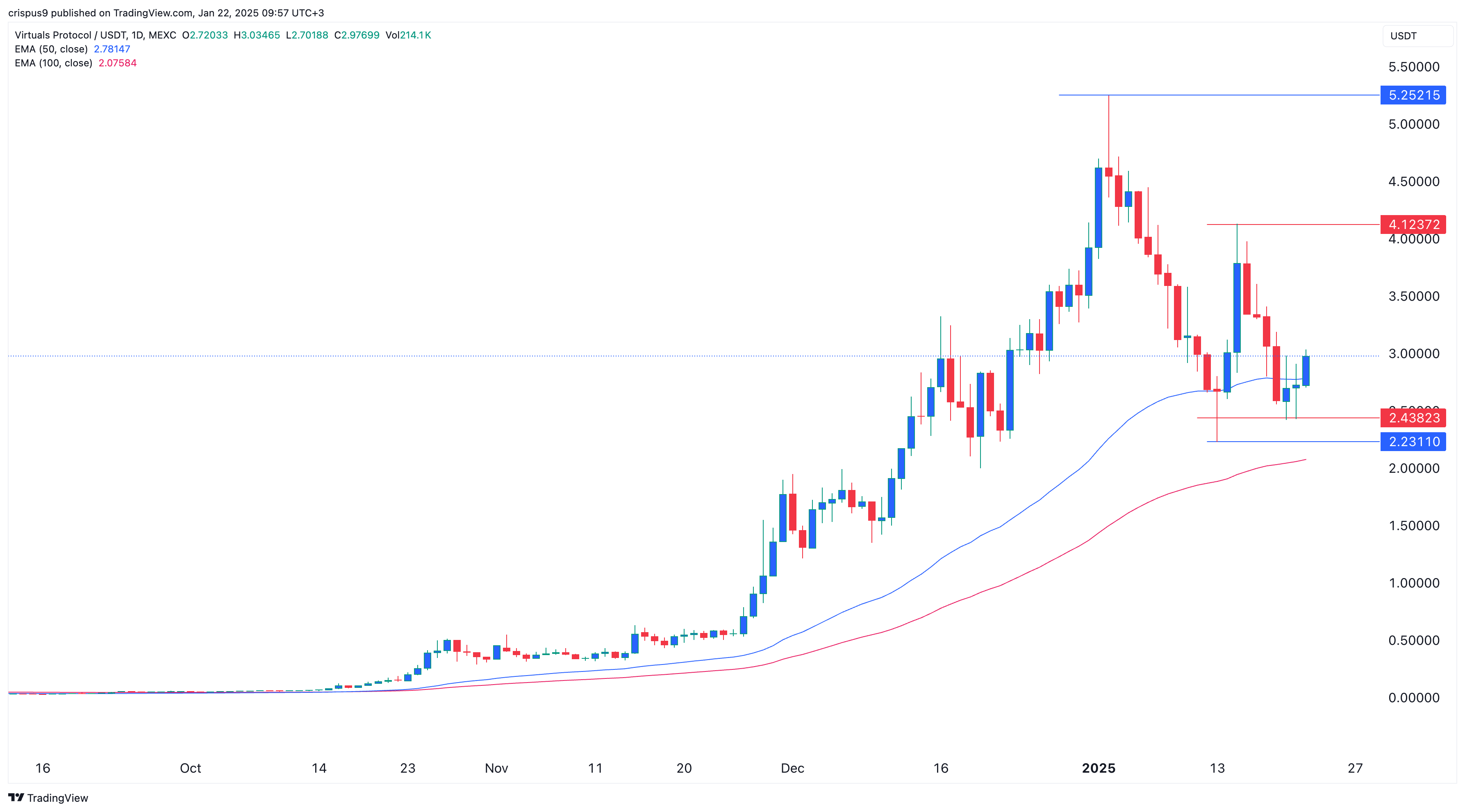 The Virtuals Protocol price rose for three consecutive days amid robust investments in the artificial intelligence industry. VIRTUAL token rose to $3, up from this month, giving a market cap of over $3 billion. So, will the VIRTUAL price continue rising this year?