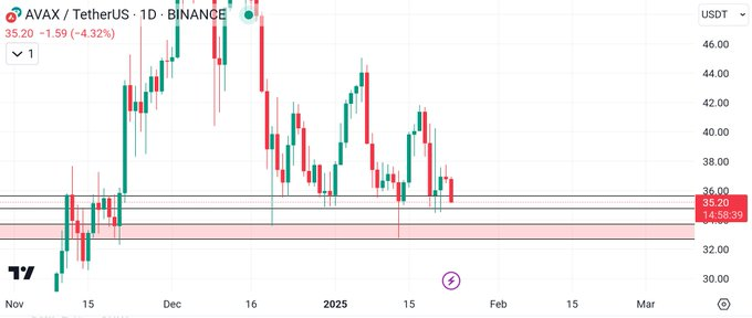 Avalanche (AVAX) price is testing the critical support zone between $35.15 and $35.70. The price movement in this range has sparked attention among traders and analysts as the token determines its next trajectory.