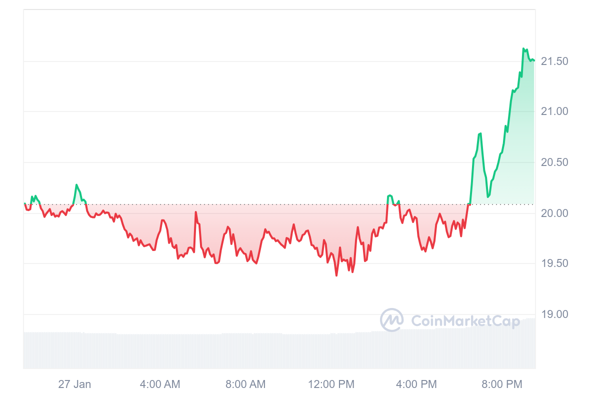 The Decentralized exchange was up 8% over the last 24 hours at a 5-year high of $21.46, while its market cap was seated at over $1.2 billion at press time.