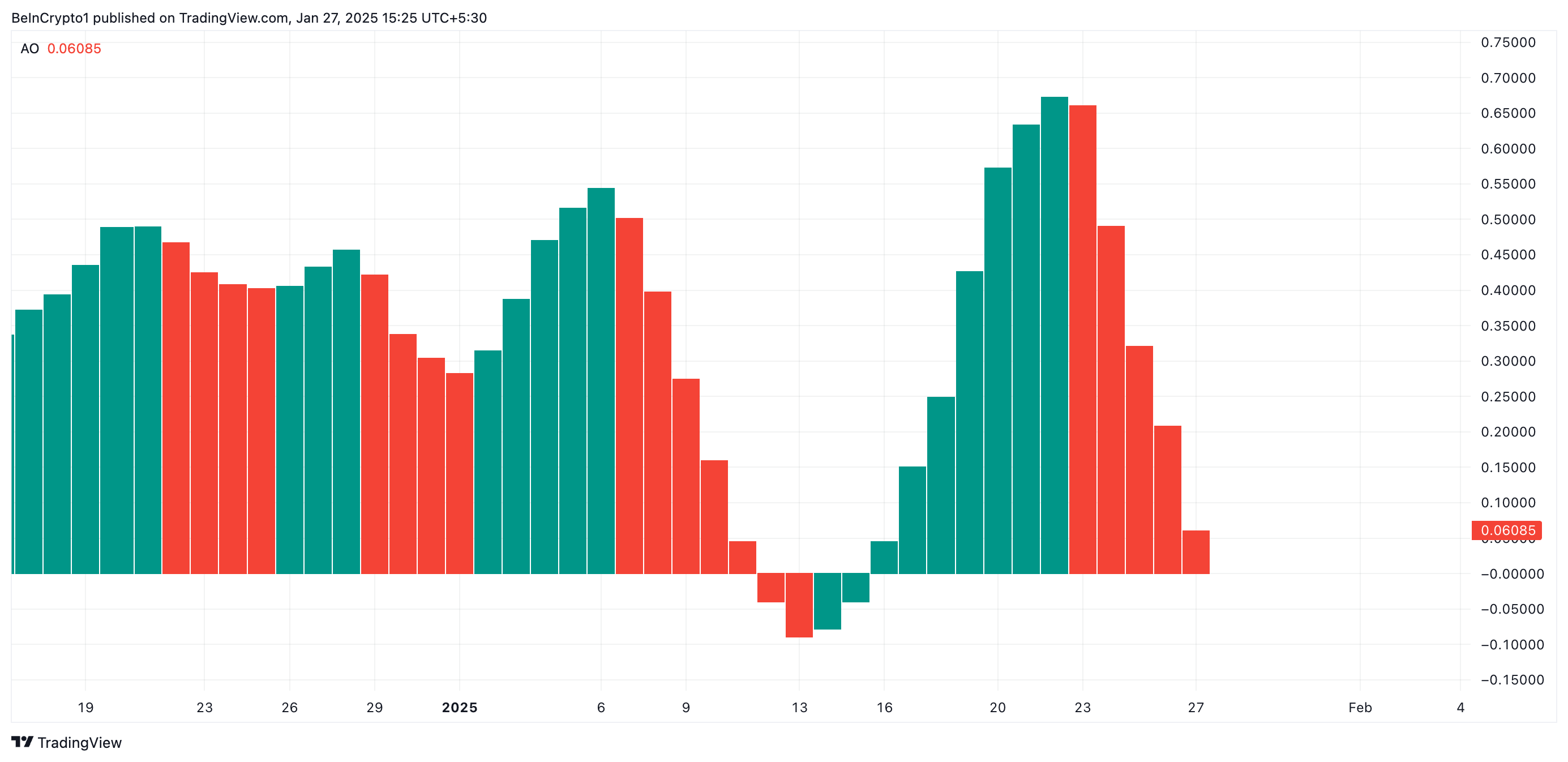 On the daily chart, FARTCOIN’s Awesome Oscillator indicator reflects the growing selloffs among market participants. As of this writing, this momentum indicator presents a red histogram bar.
