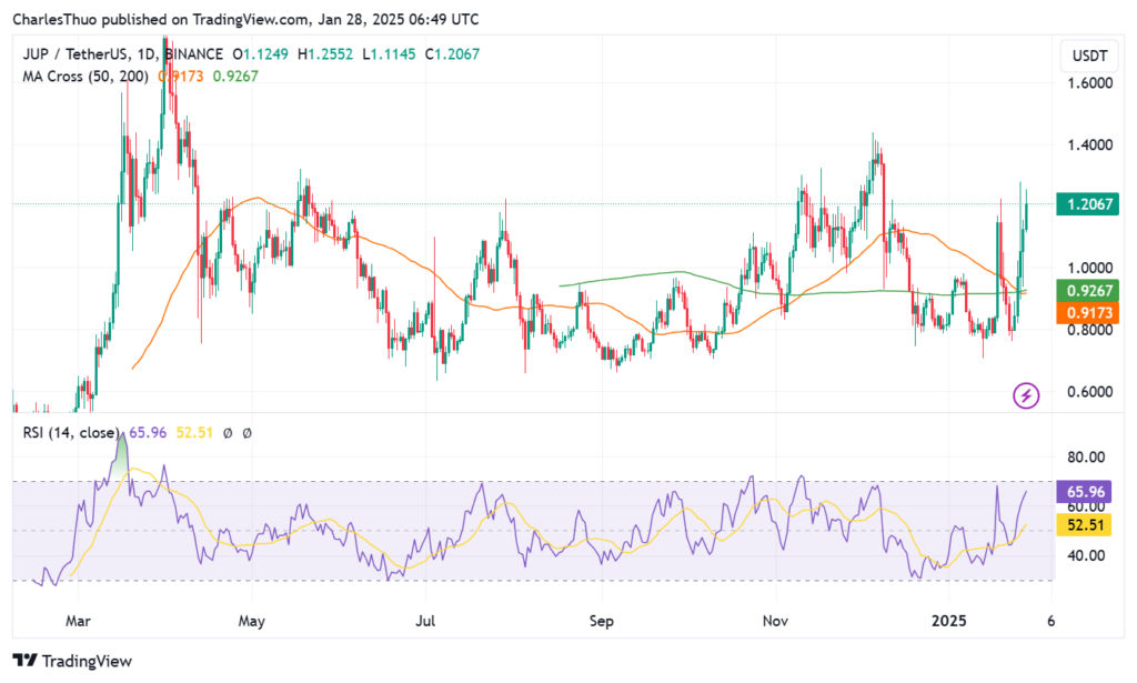 These developments contributed to a 40% price surge, pushing JUP’s price to $1.26 before settling at $1.23 at the time of reporting.