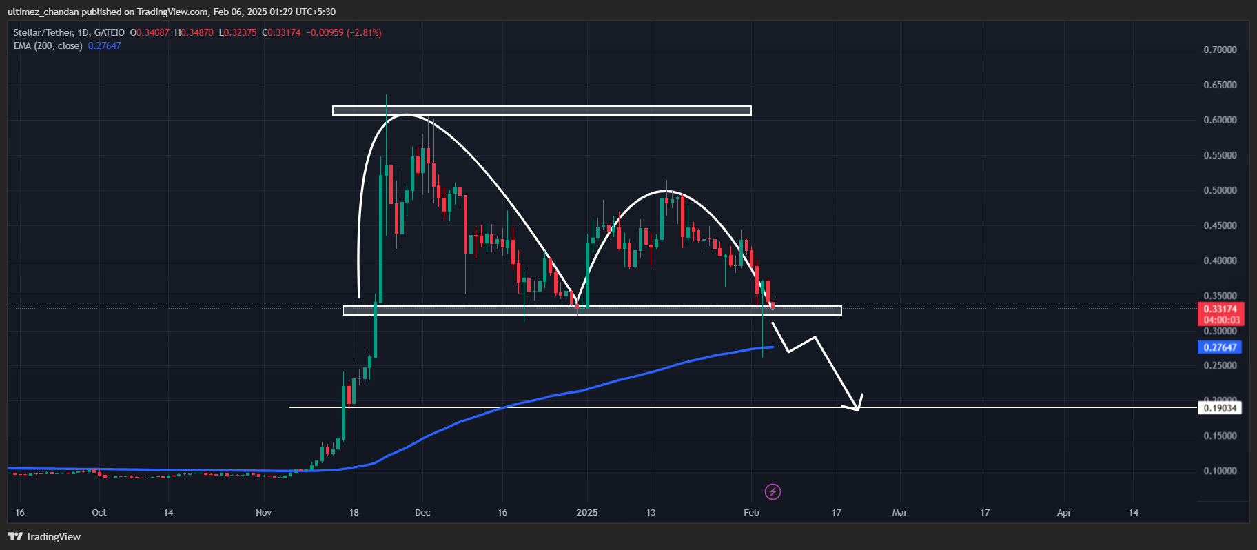 XLM at Risk of 40% Price Drop, Bearish Pattern Sparks Sell-Off Warnings