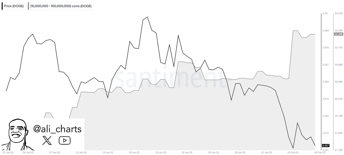 Despite the growing bearish influence, whales are purchasing DOGE at a massive discount. As per the recent X post by Ali Martinez, whales have seized the opportunity to buy 750 million DOGE.
