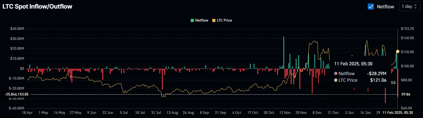 Litecoin (LTC) is trading near $121.90 and has experienced a 2% price surge in the past 24 hours. However, during the same period, its trading volume jumped by 30%, indicating heightened participation from traders and investors compared to the previous day.