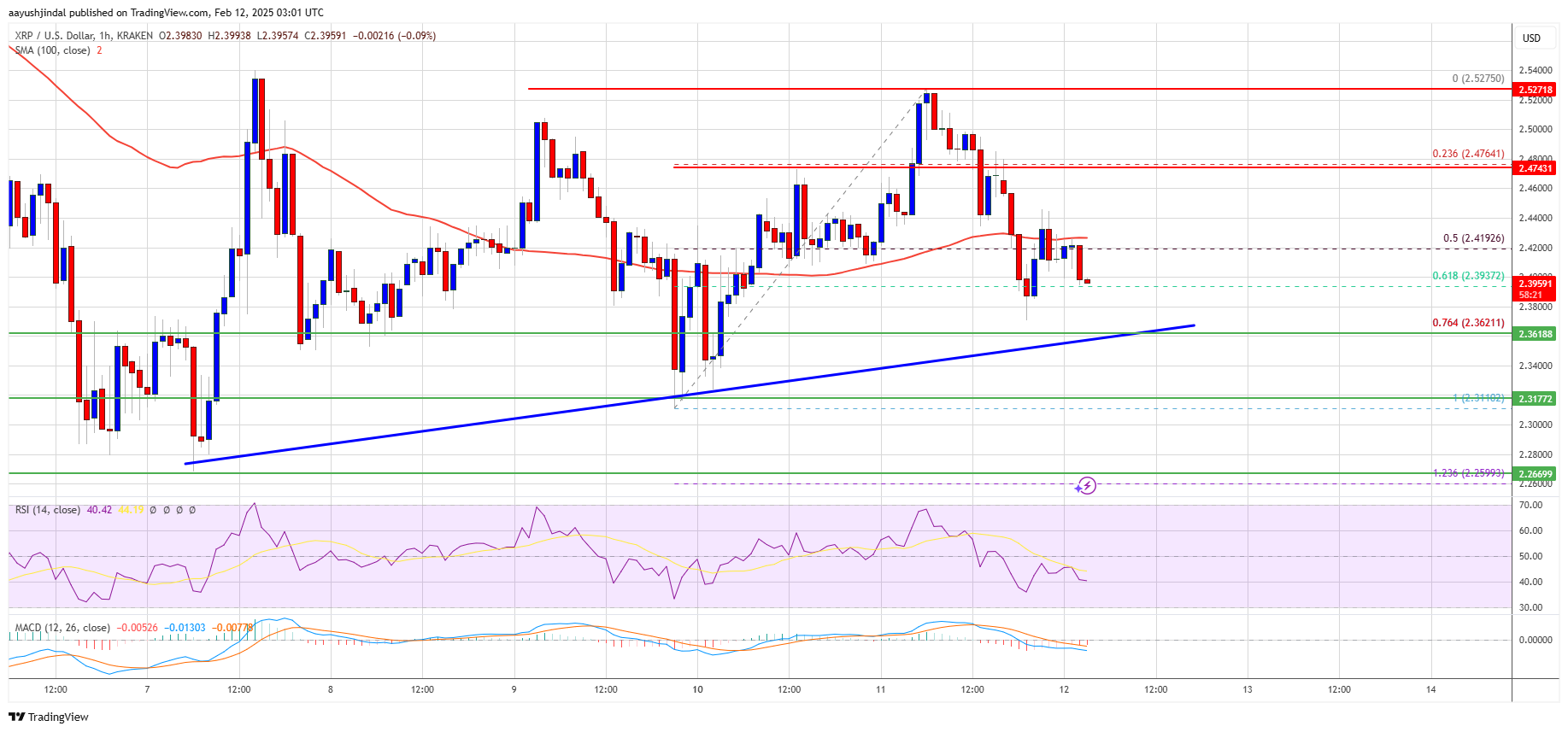 XRP price struggled to settle above the $2.50 resistance zone. The price started another decline from the $2.52 level, like Bitcoin and Ethereum. There was a move below the $2.45 level.