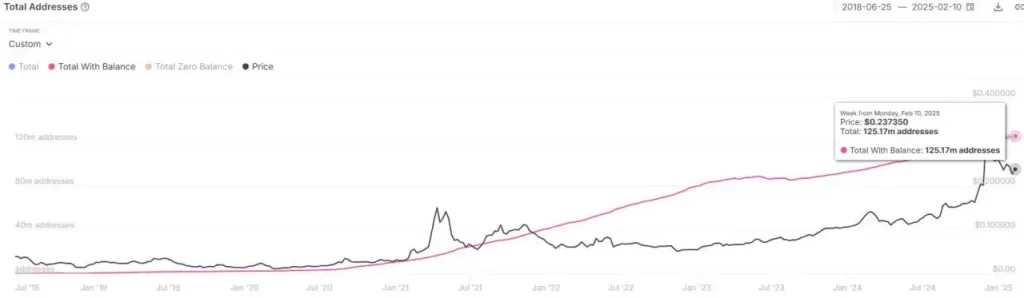 On February 12, 2025, the TRON (TRX) network achieved a significant milestone, surpassing 125 million addresses with a balance. This marks a major expansion in the token’s user base, reinforcing its position as one of the largest and most actively used blockchains. Historically, a growing number of active addresses often correlates with increased demand, which, if sustained, could fuel further price appreciation.