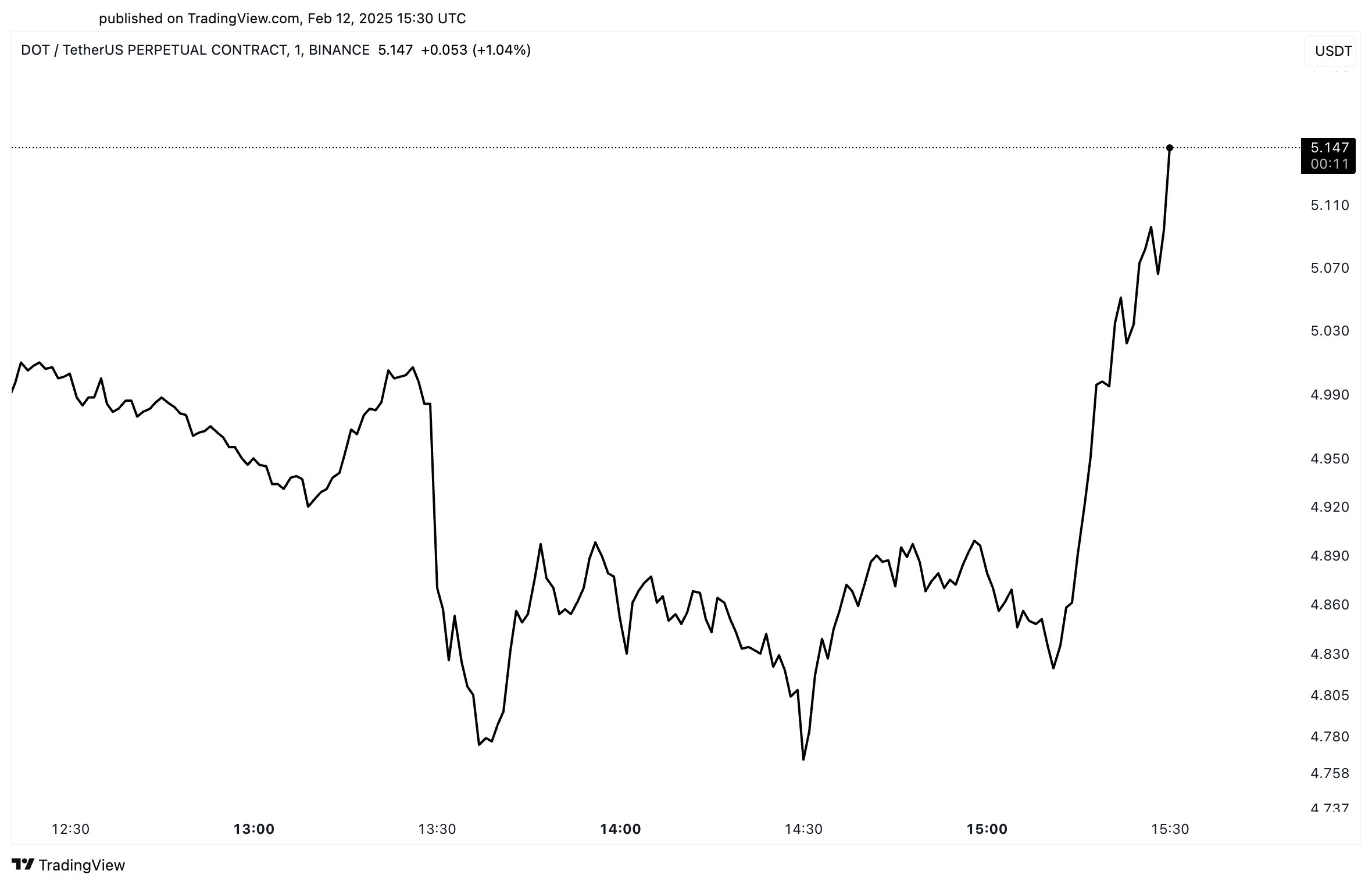 After reaching the bottom, DOT experienced a steady recovery. It was followed by a sudden sharp increase, culminating at $5.17 at the time of writing.
