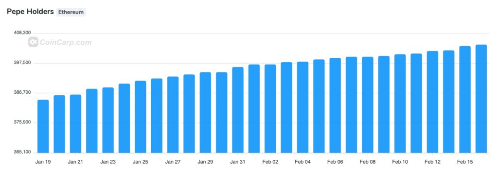 Indeed, the number of Pepe holders has continued rising, as shown in the chart below. There are now 404,263 holders, a big increase from 384,000 in the same period last month. That is a sign that the token is going through an accumulation phase, which is then followed by a strong rebound.