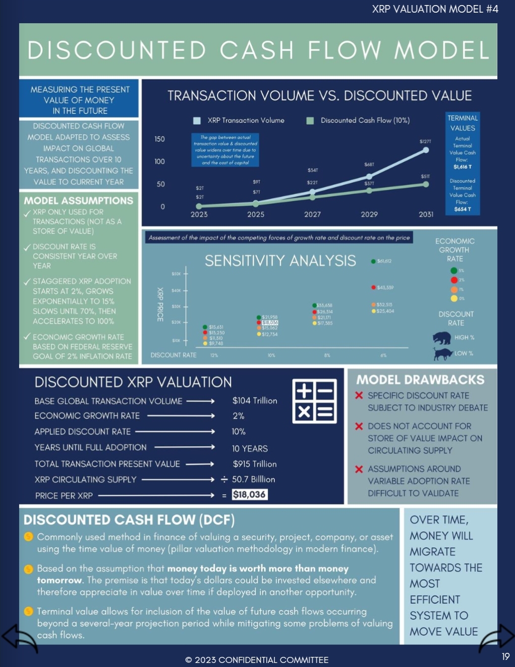 With these factors, it estimates the total present value of XRP’s transaction volume at $915 trillion. Dividing this by XRP’s circulating supply of 50.7 billion tokens at the time of the assessment results in a fair value estimate of $18,036 per XRP.