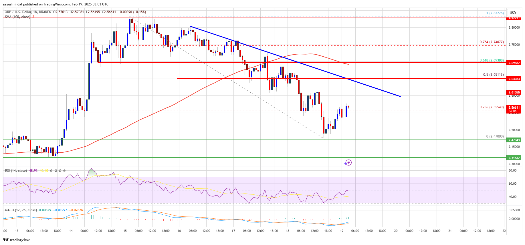 If $XRP fails to clear the $2.650 resistance zone, it could start another decline. Initial support on the downside is near the $2.50 level. The next major support is near the $2.480 level.