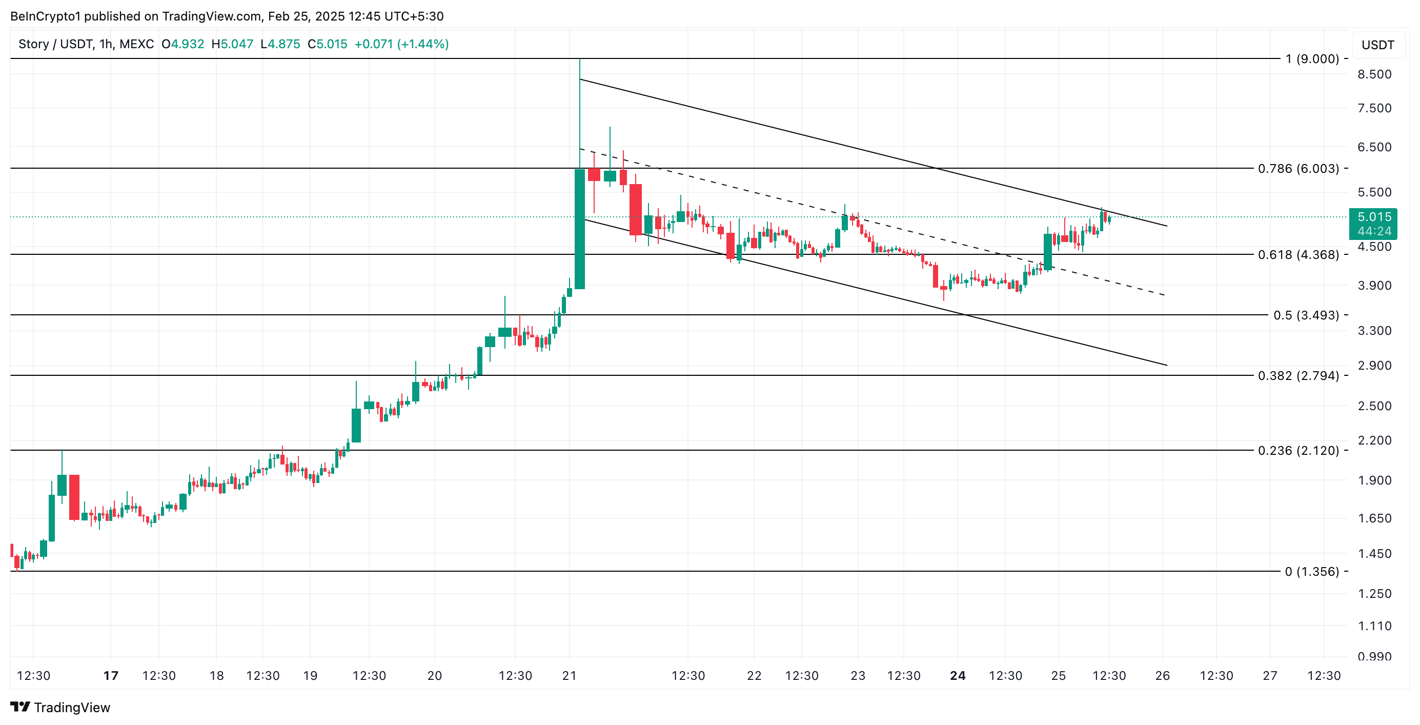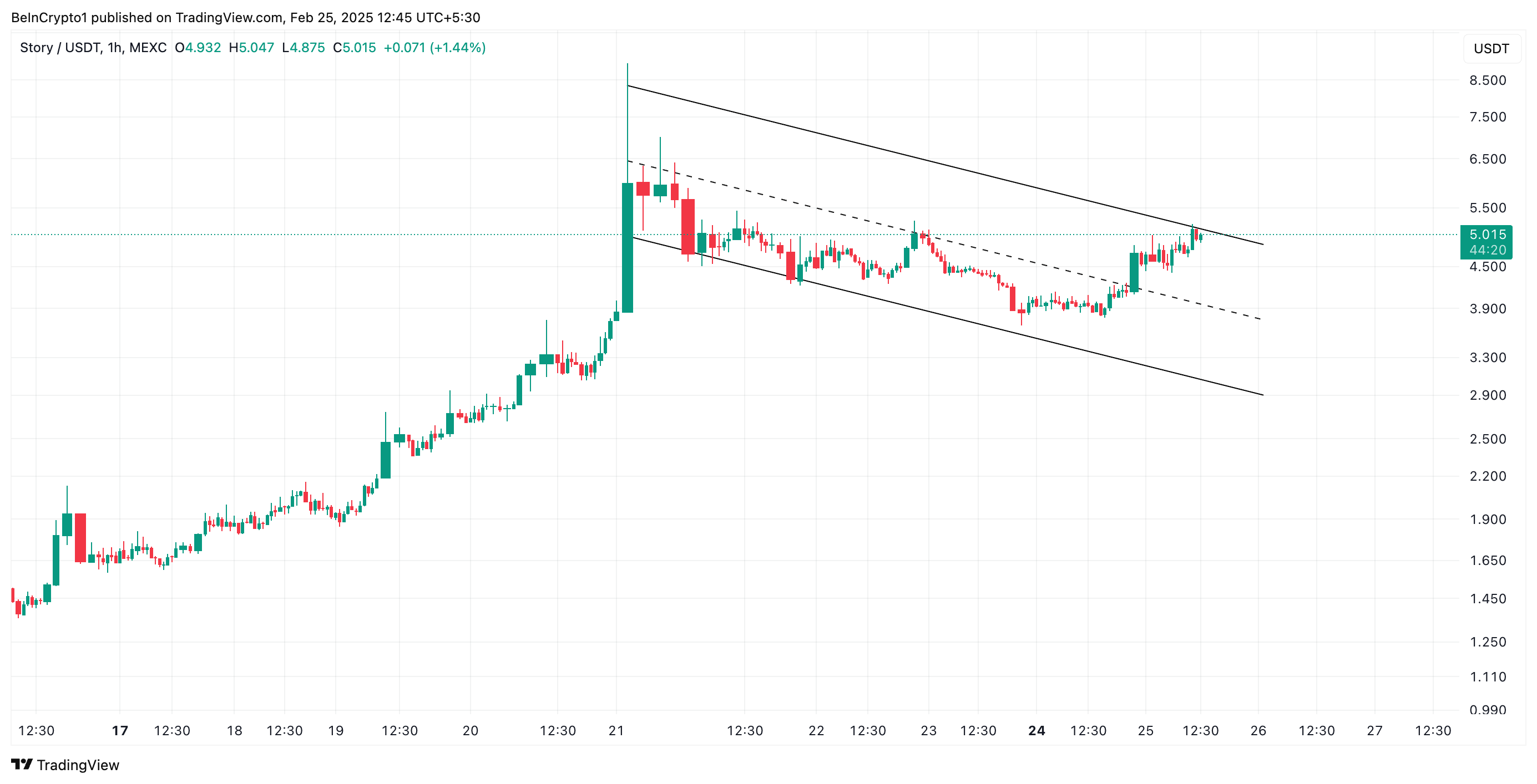 IP’s value has declined since climbing to an all-time high of $9 four days ago. Currently exchanging hands at $5.01, the altcoin’s price has since dipped by 45%, trading within a descending parallel channel.