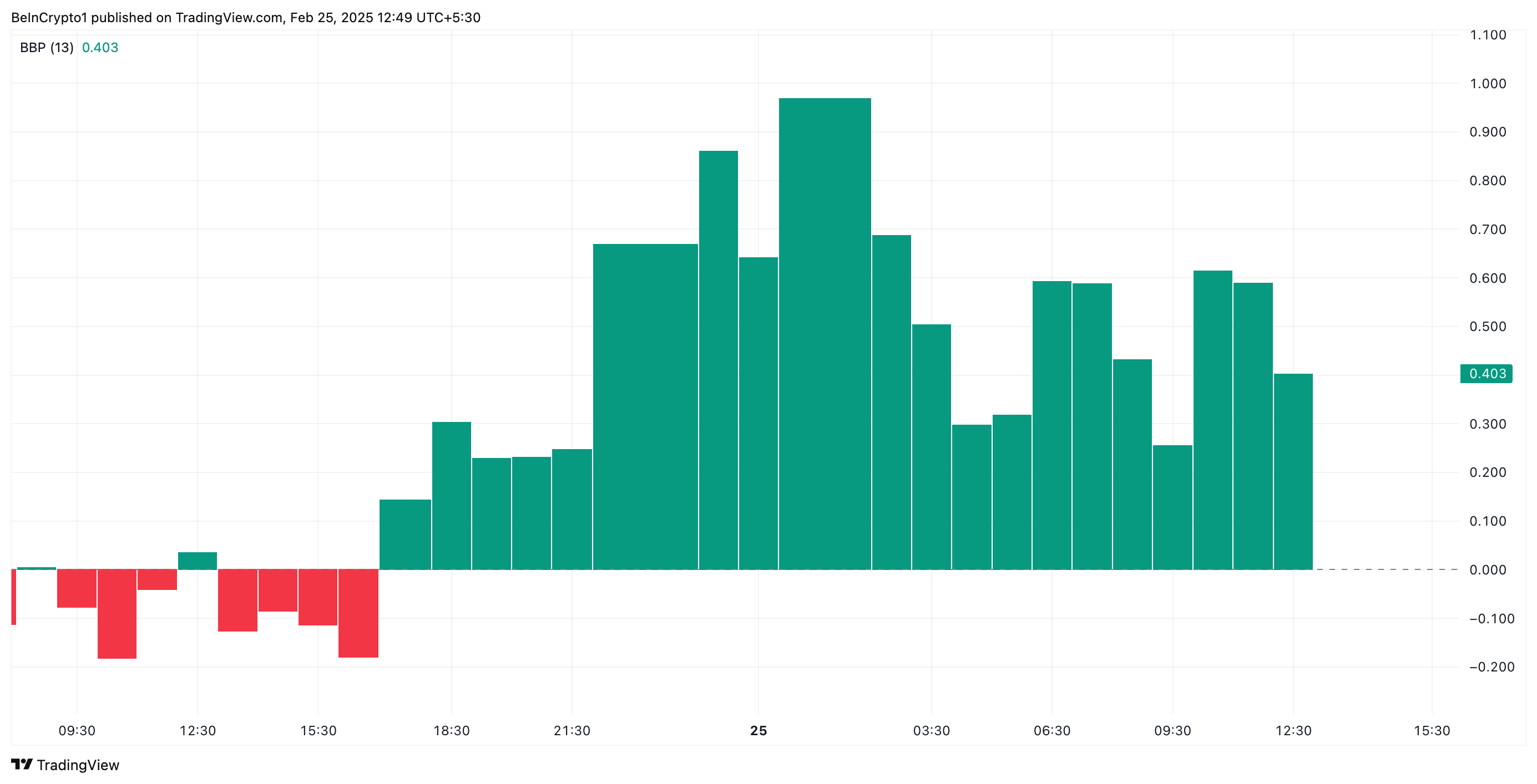 When its value is positive like this, the bulls are in control, as the asset’s price is trading above its exponential moving average (EMA), signaling strong buying pressure.