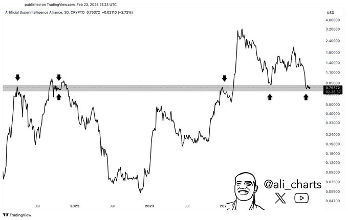 The price of Artificial Superintelligence Alliance (FET) crypto has fallen below key support level around $0.75, a zone that has played an important role in its price action over the years.