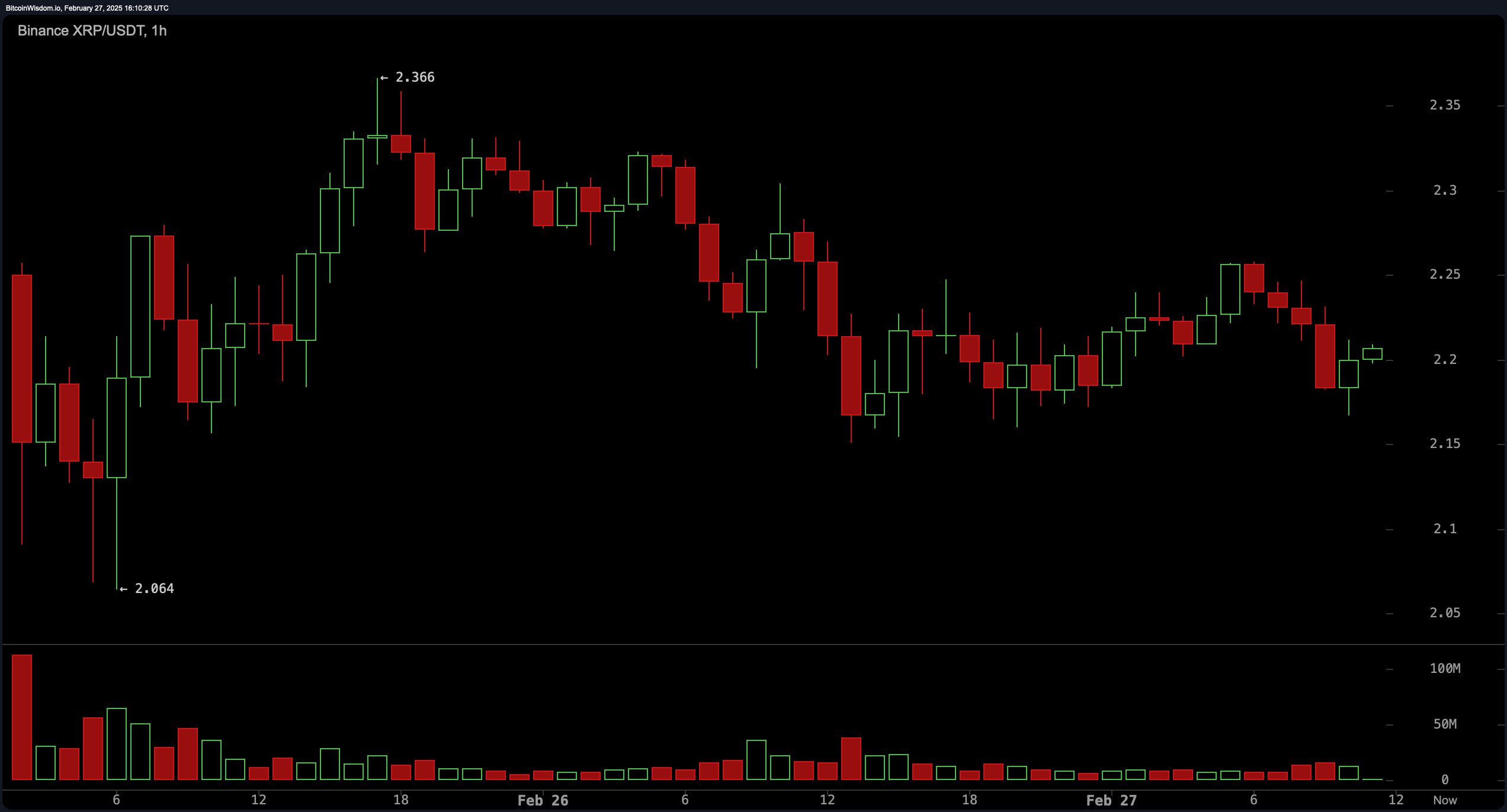 On the one-hour chart, XRP remains in a tight range following a significant sell-off, with price action consolidating near short-term support at $2.064. The chart shows a lack of strong buying pressure, and a declining volume suggests indecision in the market. Short-term resistance at $2.366 remains untested, and the price has failed to establish higher highs. A breakout above $2.25 with strong volume could push the price towards $2.3–$2.35, while a breakdown below $2.15 could trigger further declines.