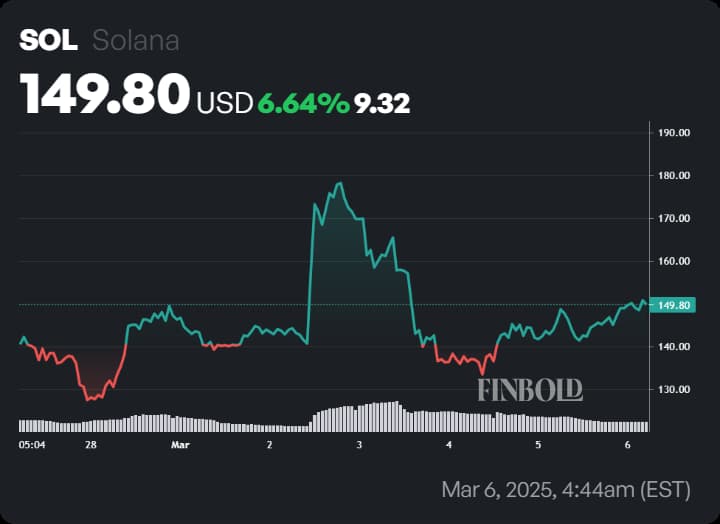 Solana (SOL) is maintaining steady momentum, trading at $149.08 with a weekly gain of over 6%, following President Trump’s announcement of a Strategic Crypto Reserve. The inclusion of SOL as one of its key assets has raised expectations of long-term price stability and increased institutional adoption.
