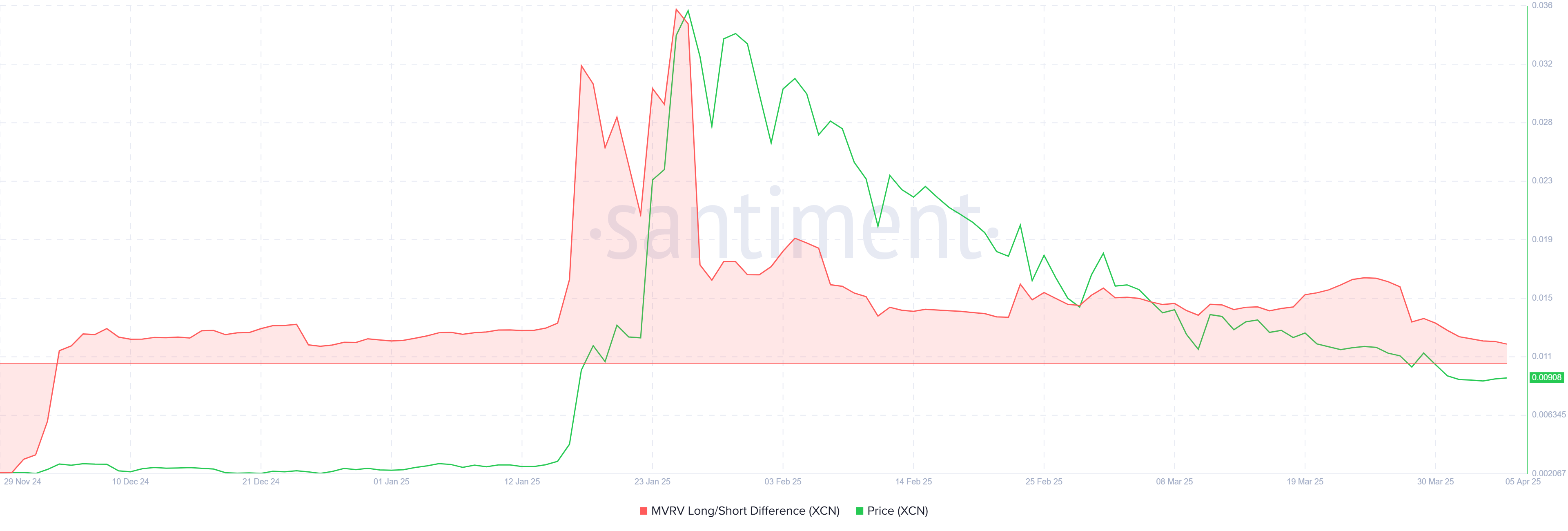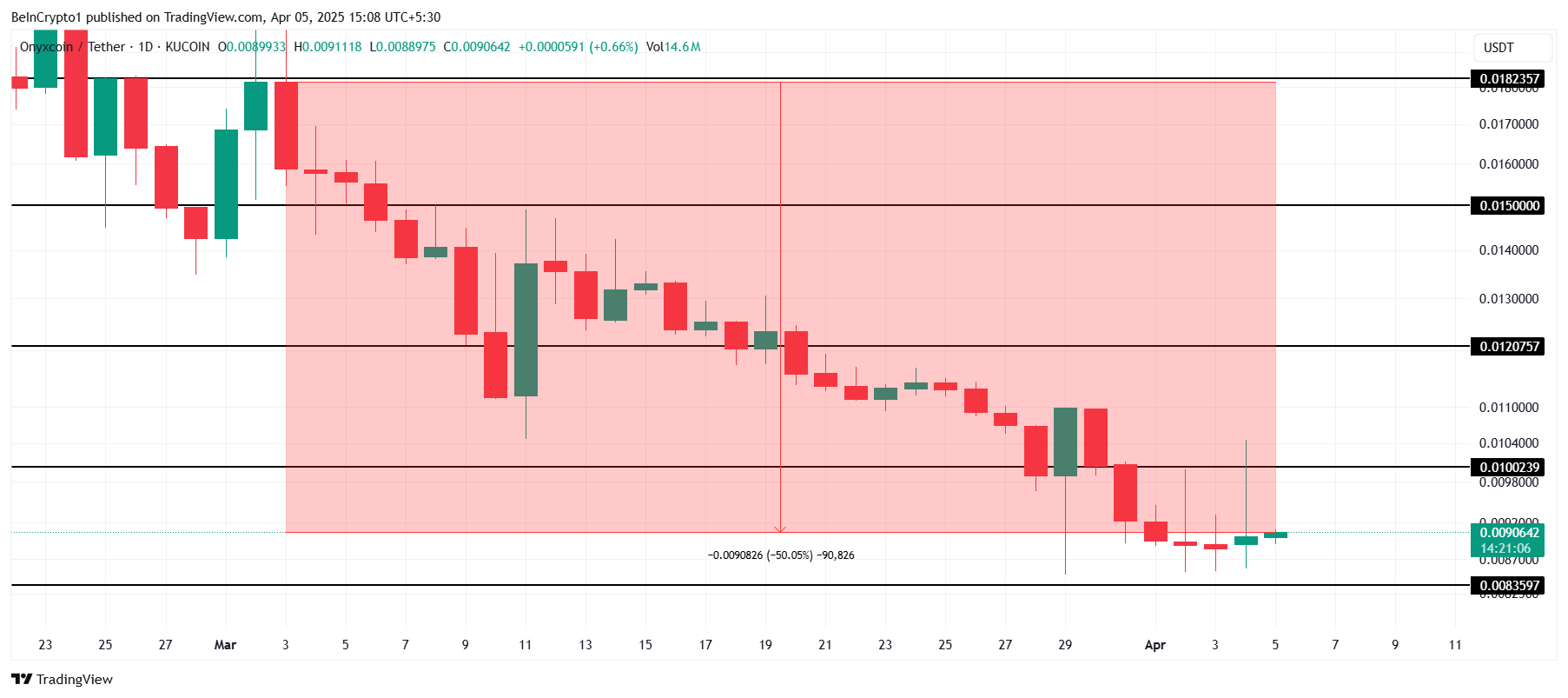 Onyxcoin’s price is currently sitting at $0.0090, having experienced a significant 50% decline over the last month. If the downward momentum persists, XCN could fall to the $0.0083 support level, further extending its losses.