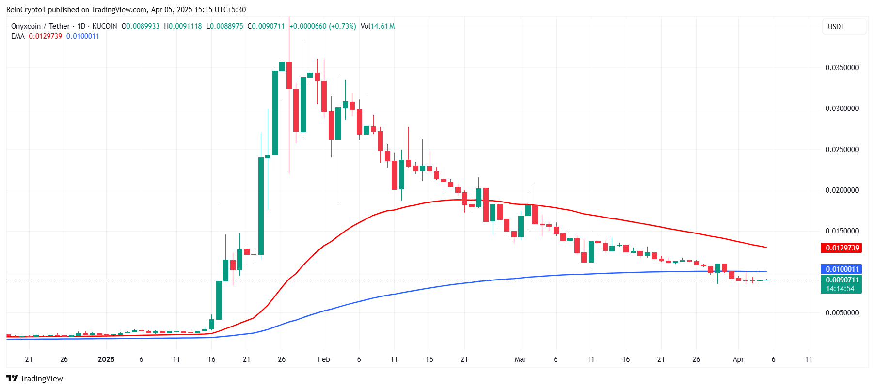 A Death Cross is generally viewed as a signal for further price decline and a continuation of the bearish trend. The growing concern is that if the Death Cross is confirmed, Onyxcoin could face a significant correction, potentially dropping lower.