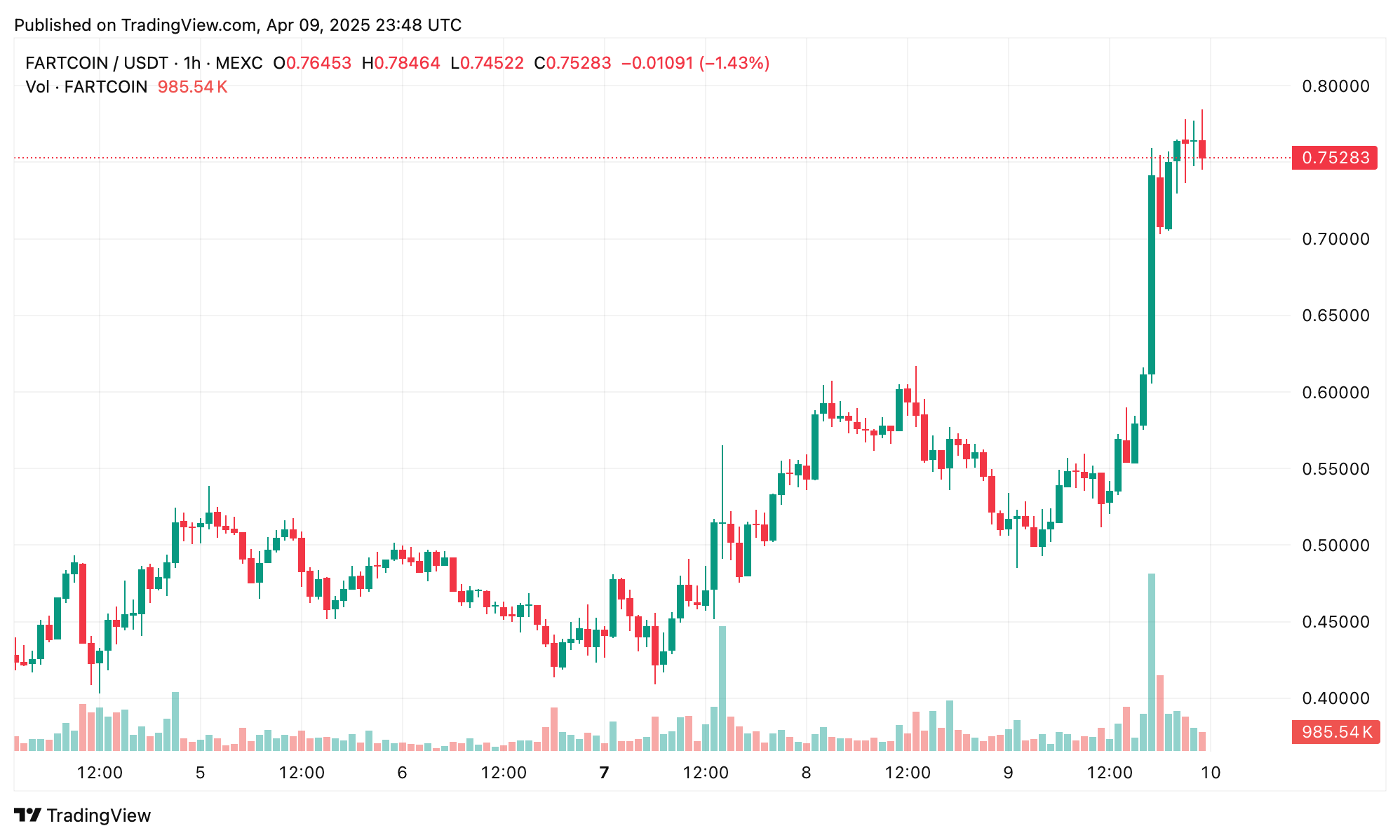 Dominating the day’s crypto leaderboard, the irreverently named FARTCOIN—a meme token infused with artificial intelligence (AI) protocols—propelled itself 47.45% upward, while XCN followed closely with a 44.69% leap.