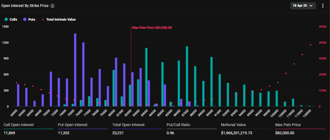 Today, April 18, amid Good Friday celebrations, 23,221 Bitcoin (BTC) options contracts will expire. The notional value for this Friday’s tranche of expiring Bitcoin options contracts is $1.966 billion, according to data on Deribit.