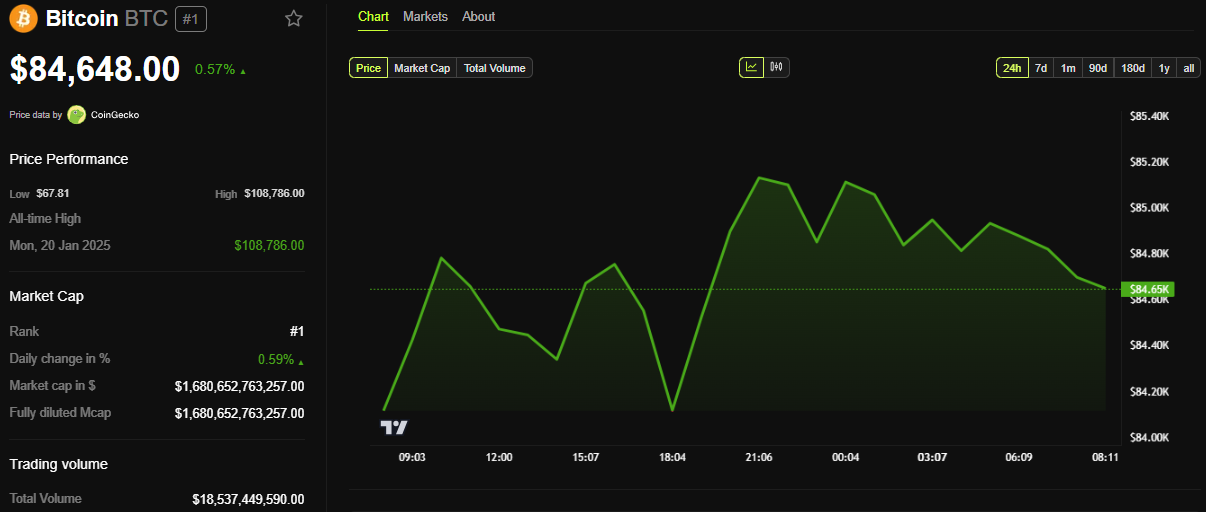 As of this writing, Bitcoin was trading for $84,648, slightly above its strike price of $82,000. Based on the Max Pain theory, prices will likely move toward this strike price as options near expiry.
