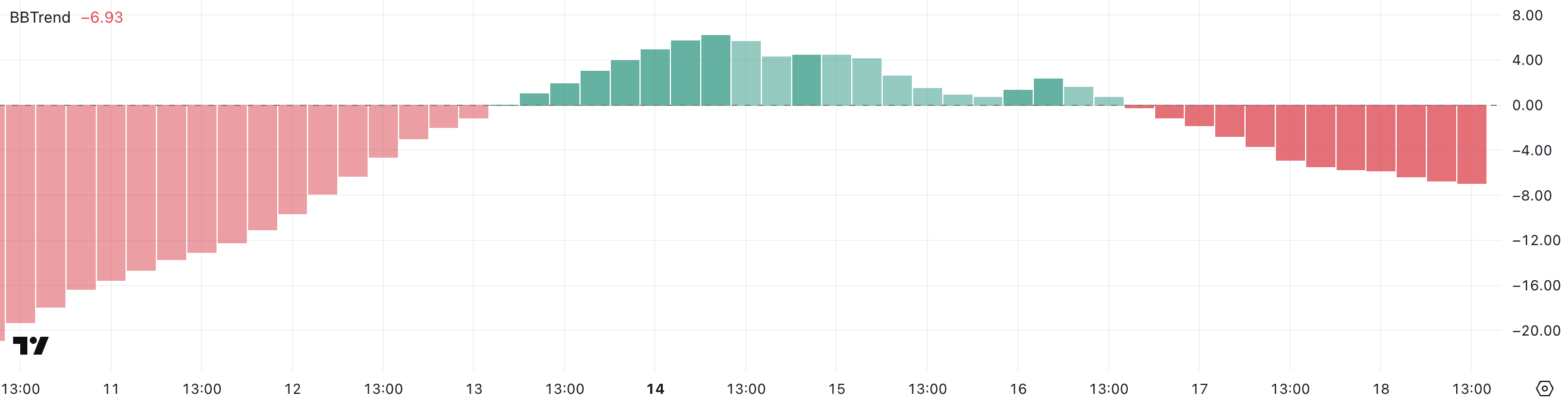 TRUMP Momentum Reverses as BBTrend Drops to -6.93
