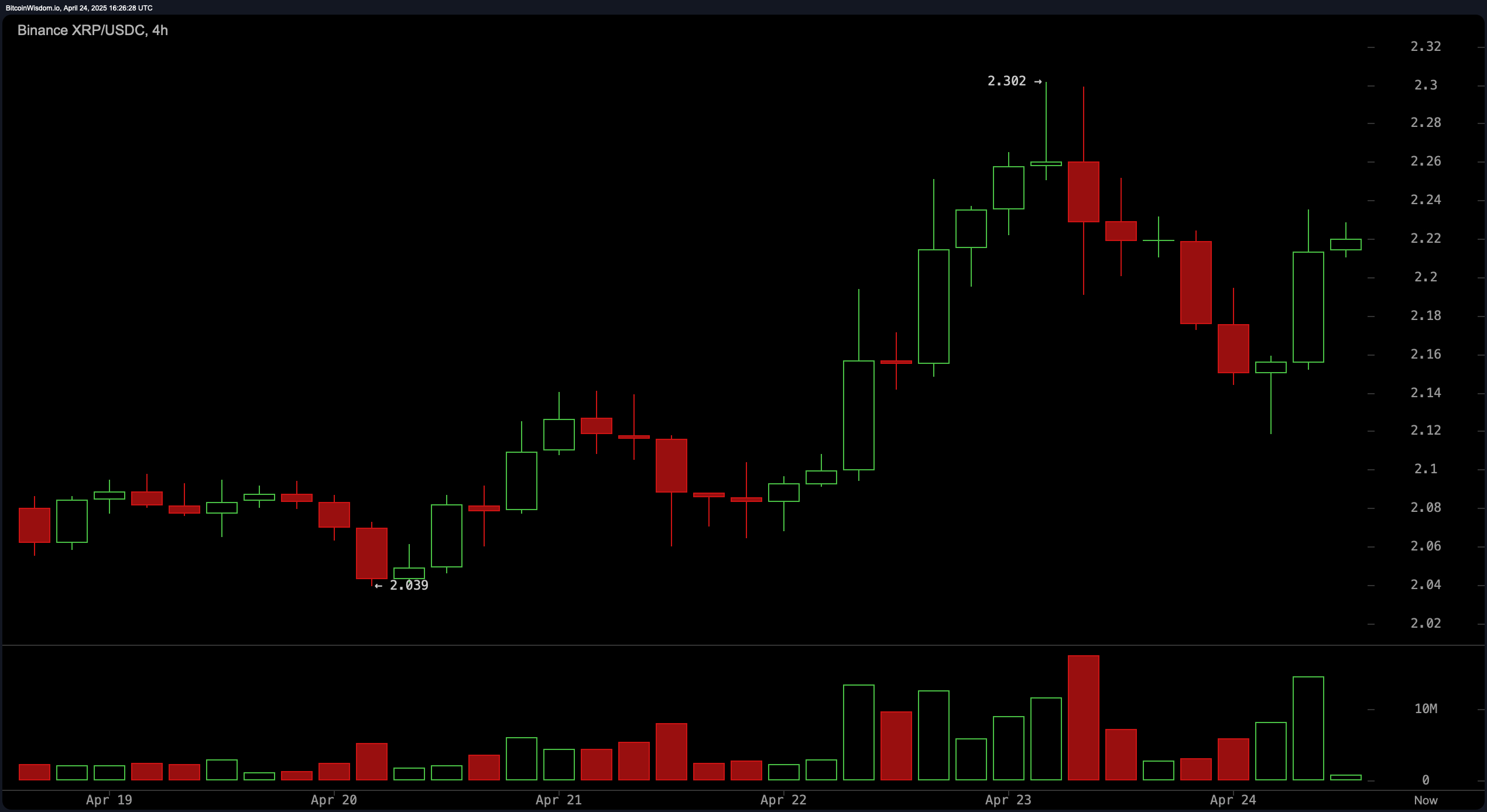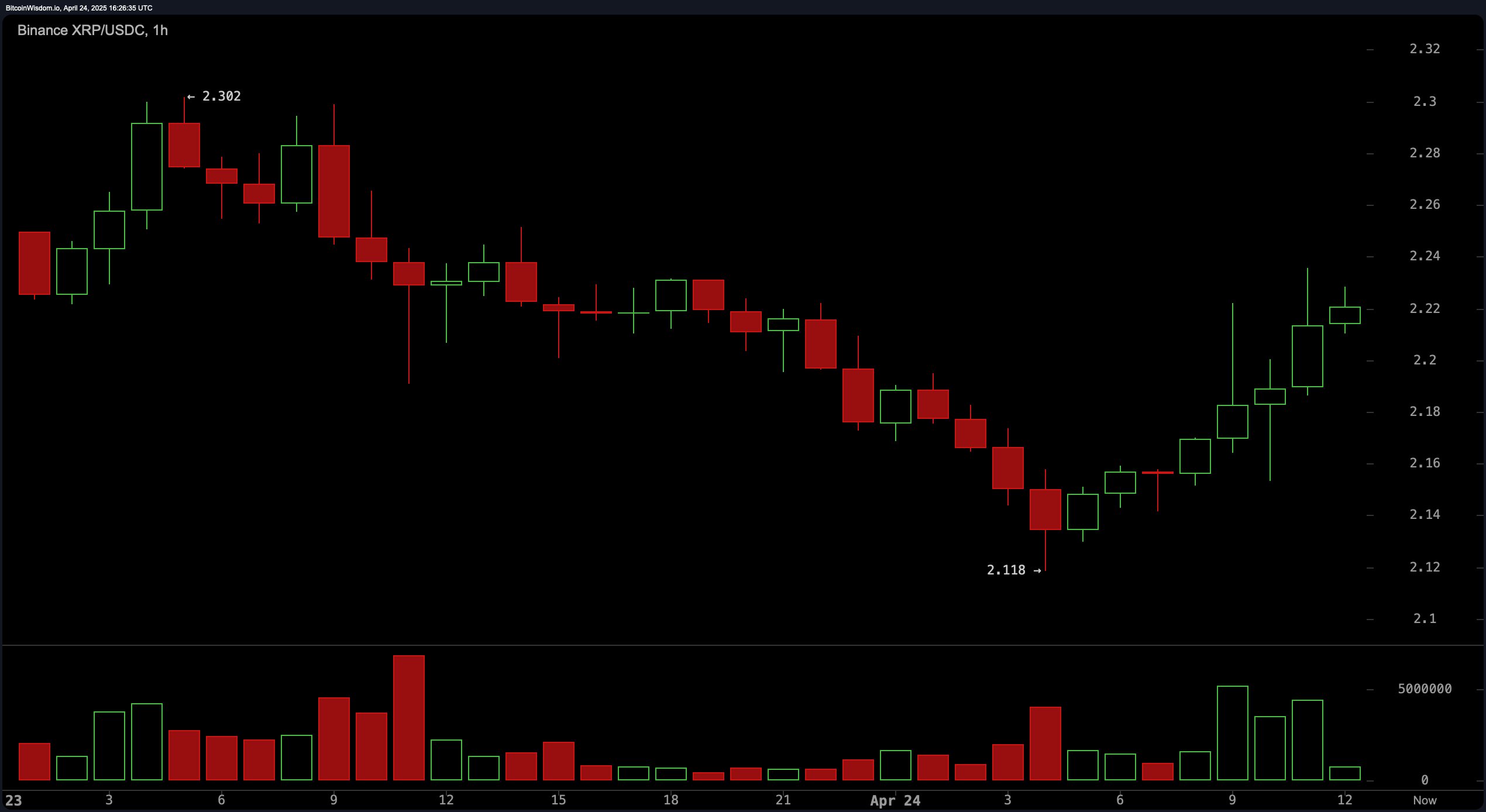 The Fibonacci retracement levels further substantiate key decision points across all timeframes. On the daily chart, the 38.2% level at $2.20 has become a fulcrum for current price action, while the 4-hour chart confirms a rebound within the golden pocket between 50% ($2.171) and 61.8% ($2.139). The 1-hour chart’s short-term retracement analysis reveals that the bounce from the 61.8% level at $2.188 is part of the larger bullish structure, reinforcing the potential for a breakout if XRP reclaims $2.24 and holds.
