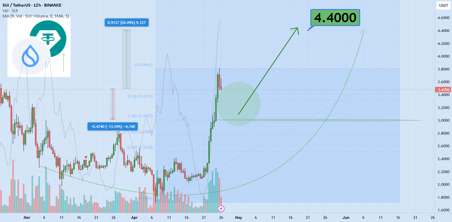 The breakout could push the SUI price toward the $4.40 target, offering a possible upside of 26%.