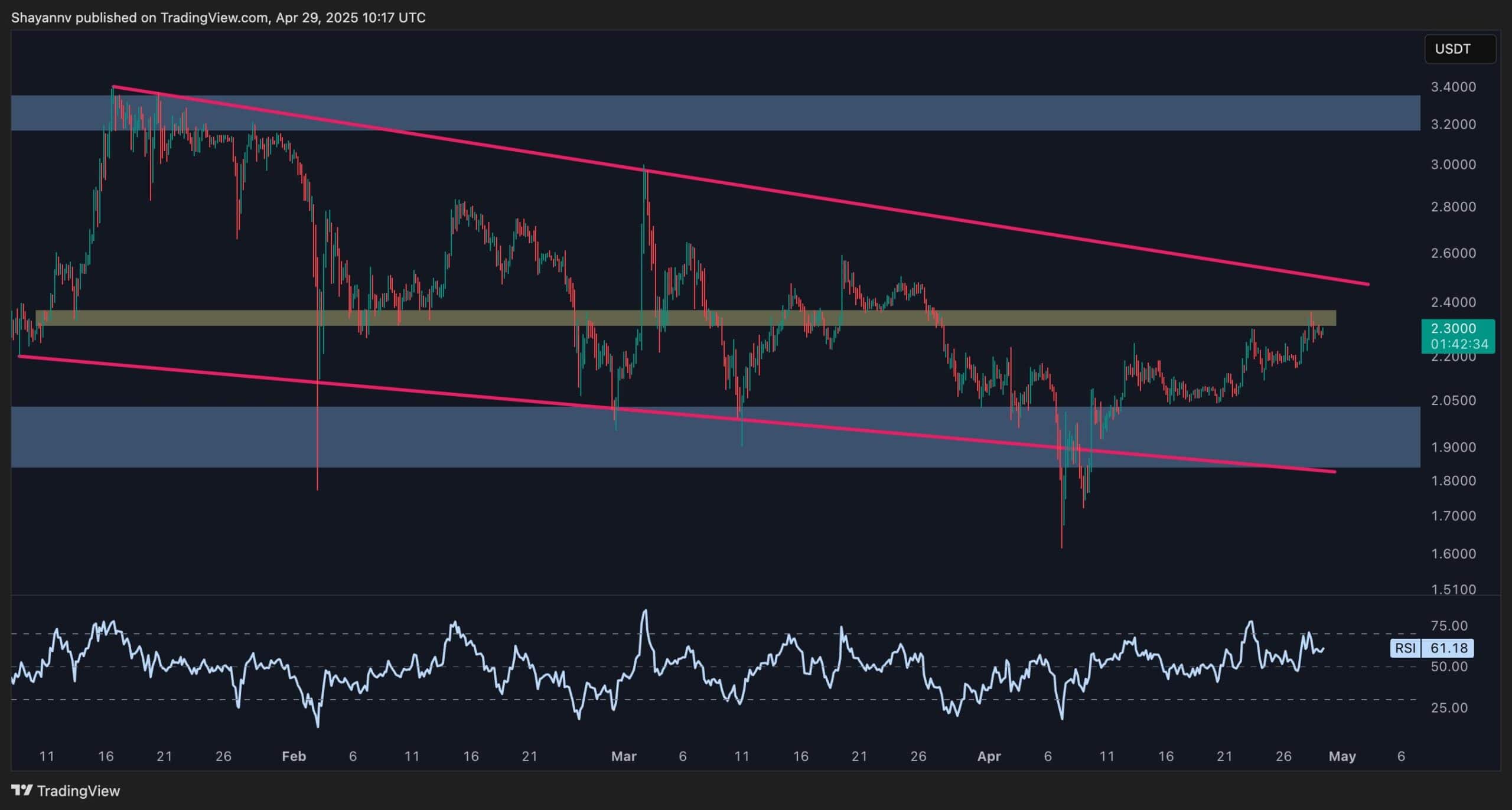 Even if Ripple manages to break above $2.4, the next immediate hurdle lies at the wedge’s upper boundary around $2.5. Only after reclaiming both these levels can buyers aim for the crucial $3 psychological threshold. In the short term, however, a minor pullback seems likely before bulls can mount a stronger attempt to push higher.