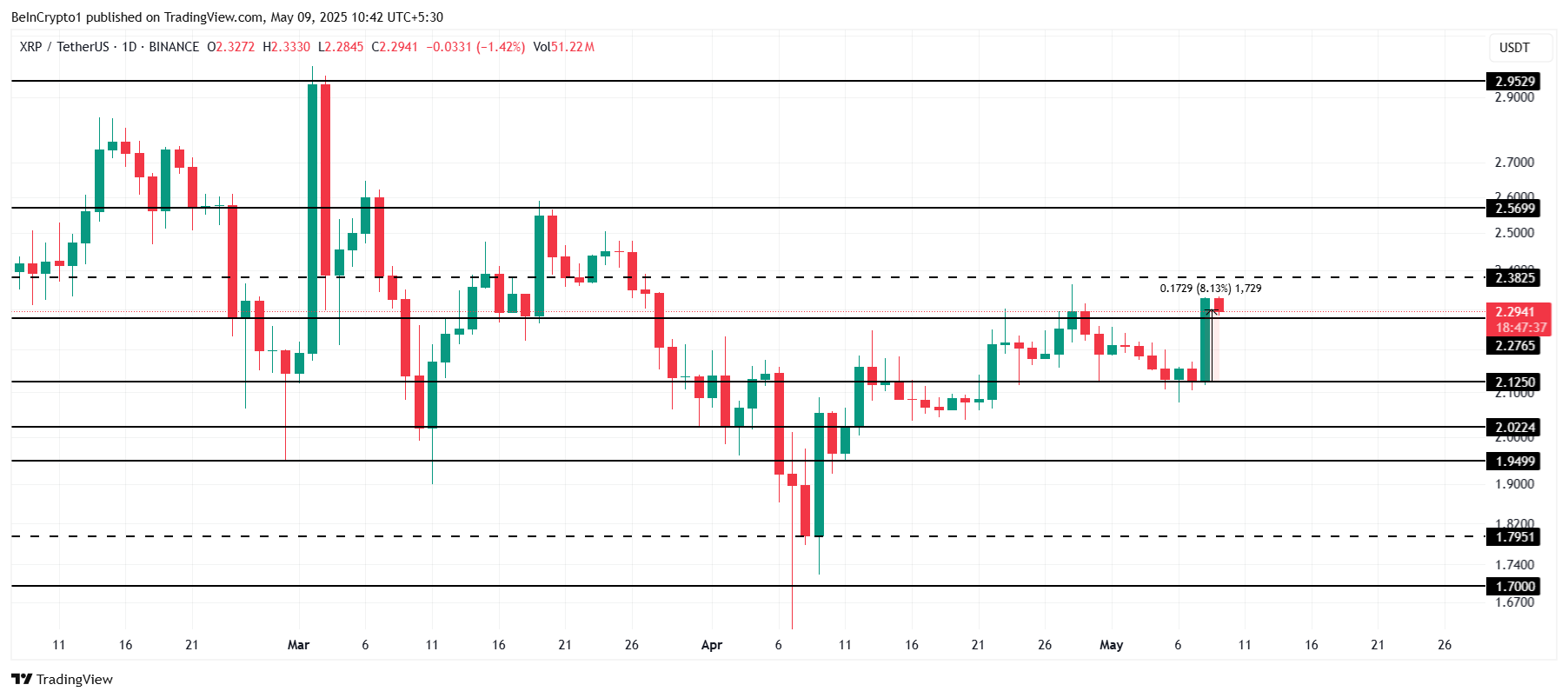 XRP has risen 8% in the last 24 hours, partially due to broader market bullishness and Ripple’s settlement with the SEC. As a result of the settlement, Ripple will pay $50 million of the original $125 million penalty, with the remaining $75 million being returned. This news has boosted XRP’s price, which is currently trading at $2.29.