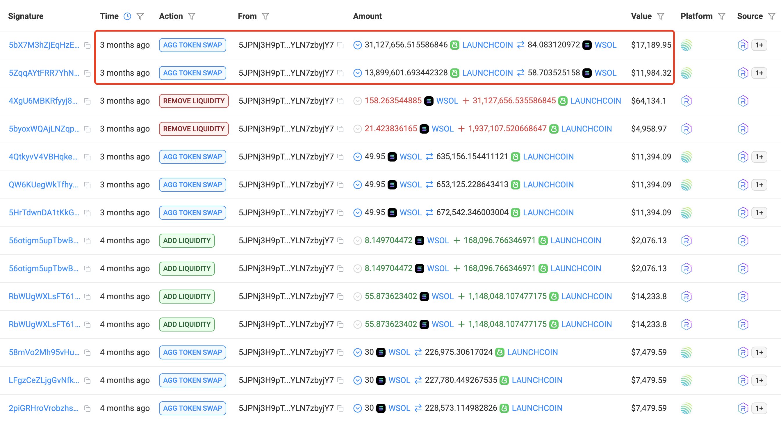 Three months ago, he bought 45 million LAUNCHCOIN near the top, spending approximately $828,000.