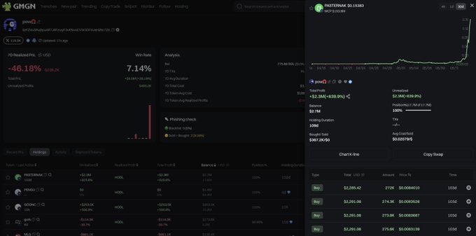 Lookonchain further says another trader, pseudonymously known as Pow, has recorded an over 7x return on LAUNCHCOIN.