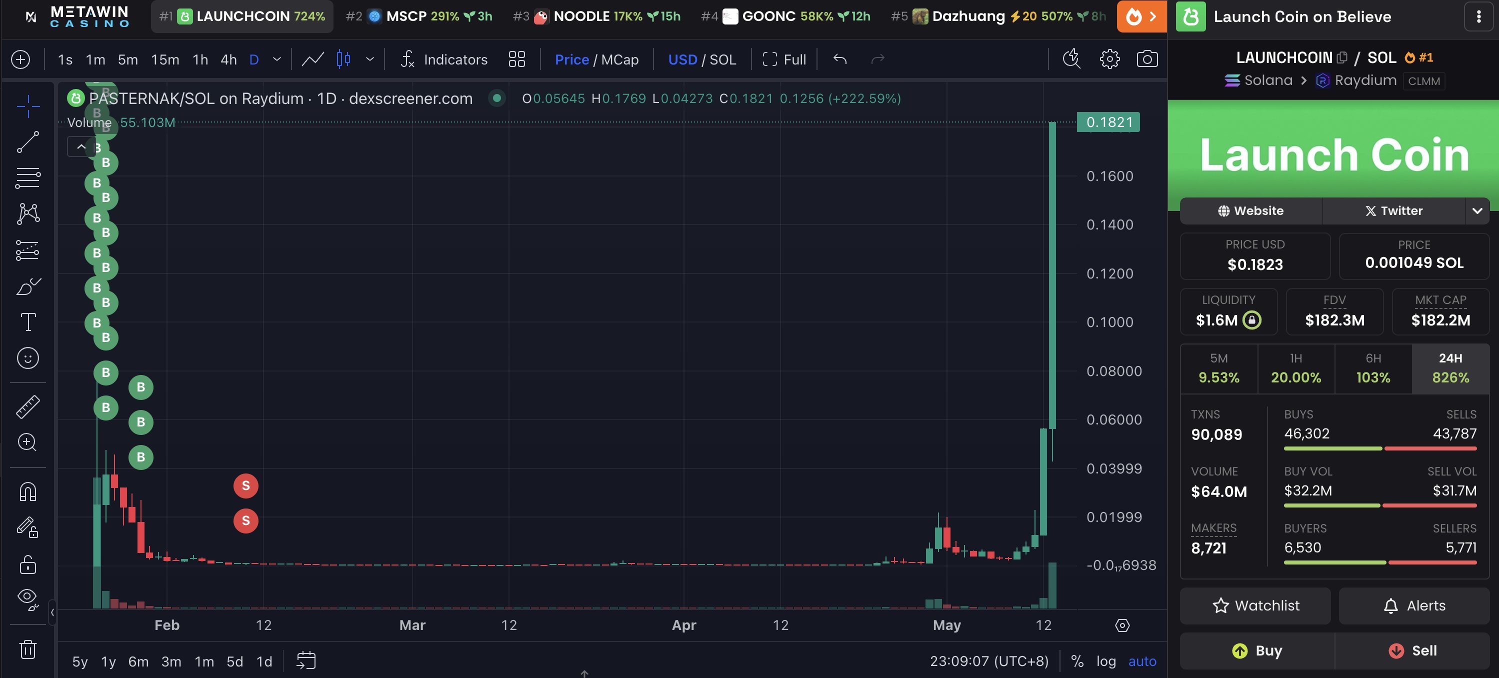 LAUNCHCOIN is trading at $0.191 at time of writing, up by 7,000% from the May 8th low of $0.00269. LAUNCHCOIN currently ranks 316th by market cap, which is slightly over $195 million.