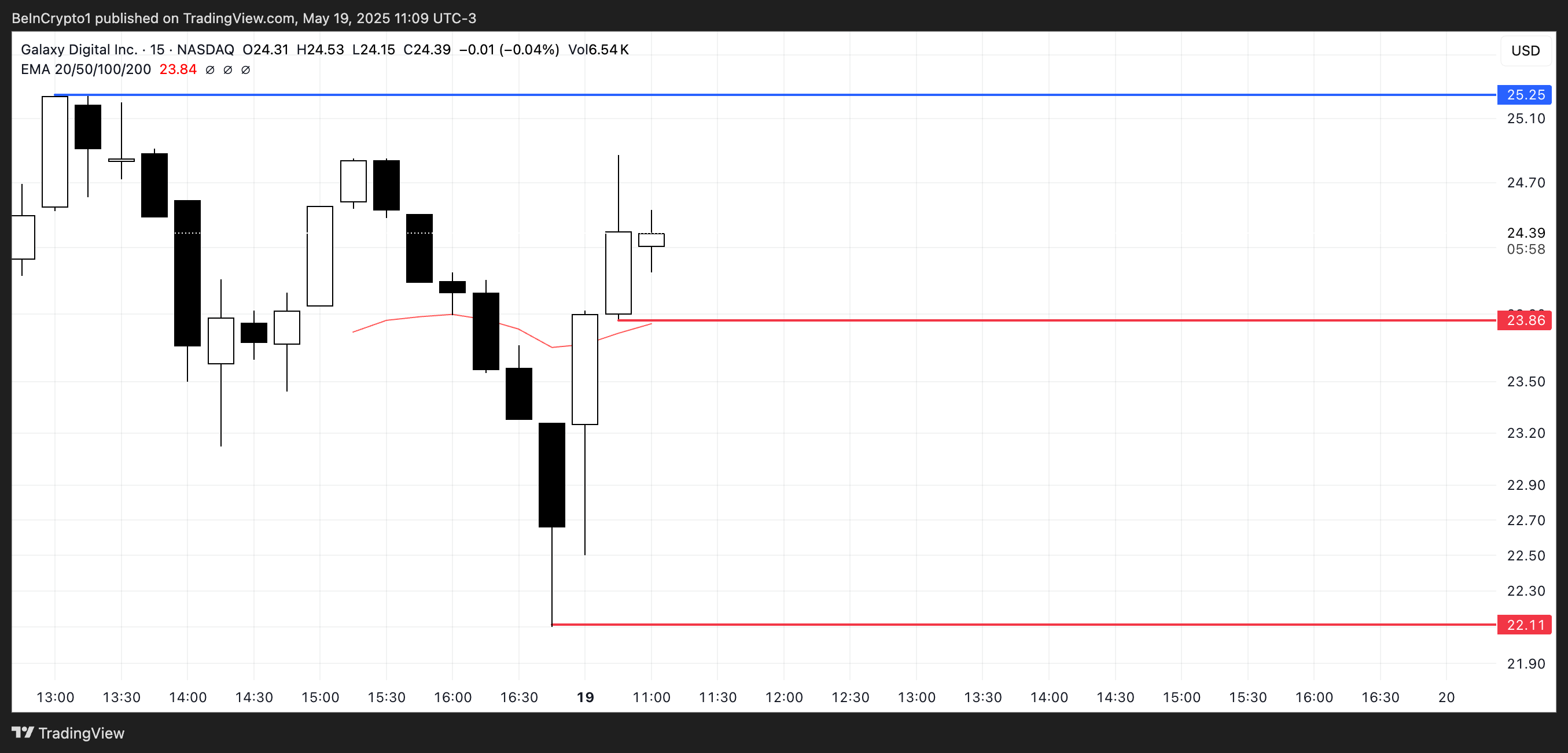 If momentum continues, GLXY could soon test resistance at $25.25, with a potential breakout toward $30 in the coming days.