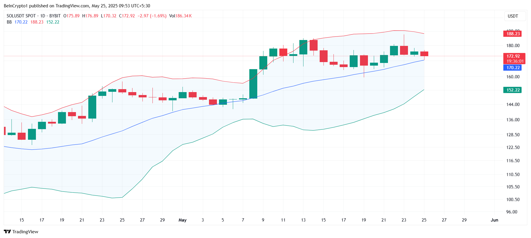 Solana’s price has been moving sideways for much of May, likely due to the token overheating in the previous weeks. However, this cooling-off period could create an opportunity for a bullish move.