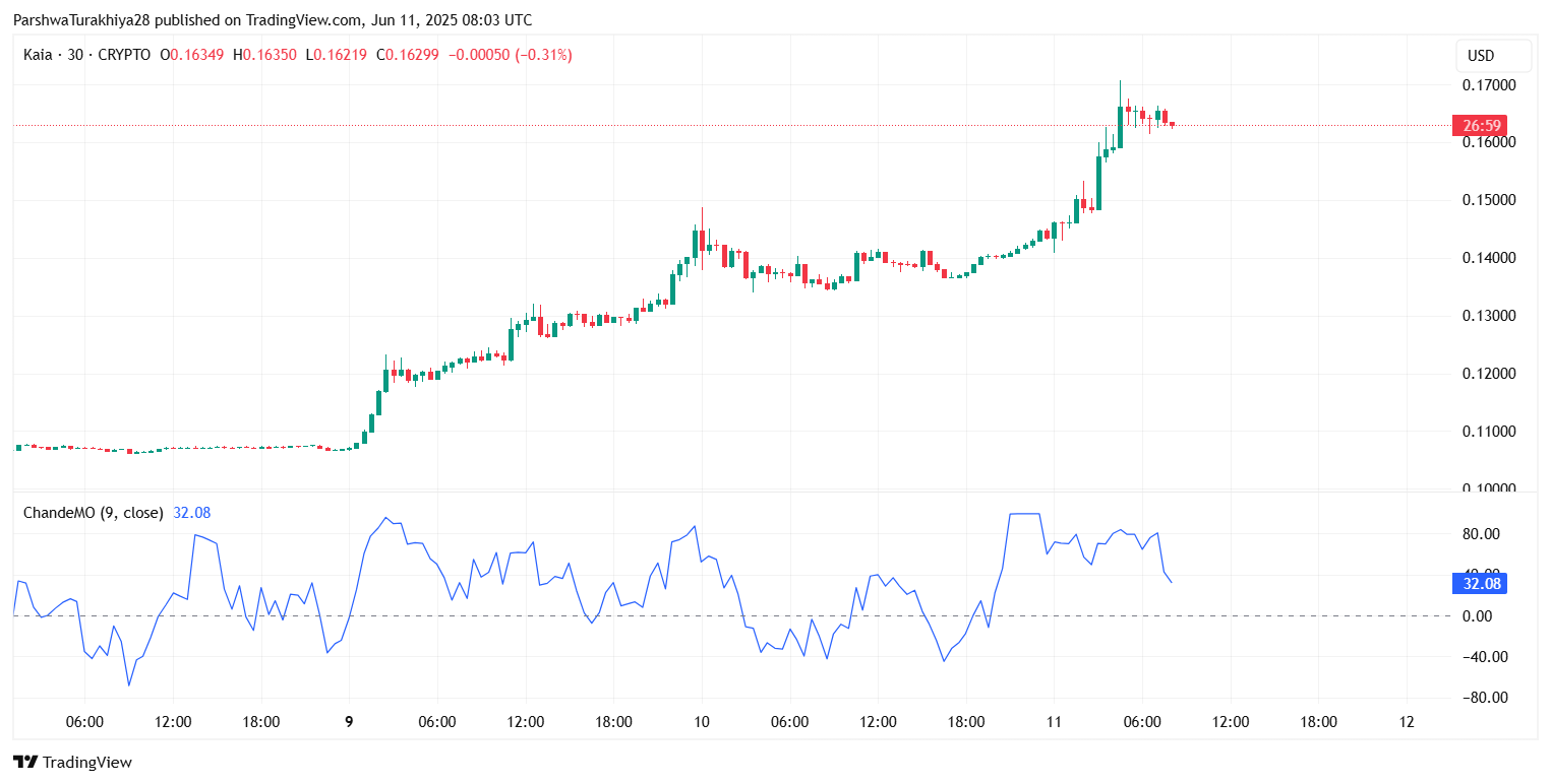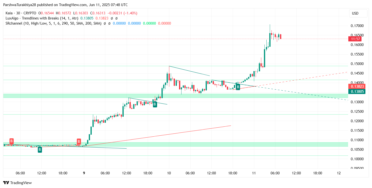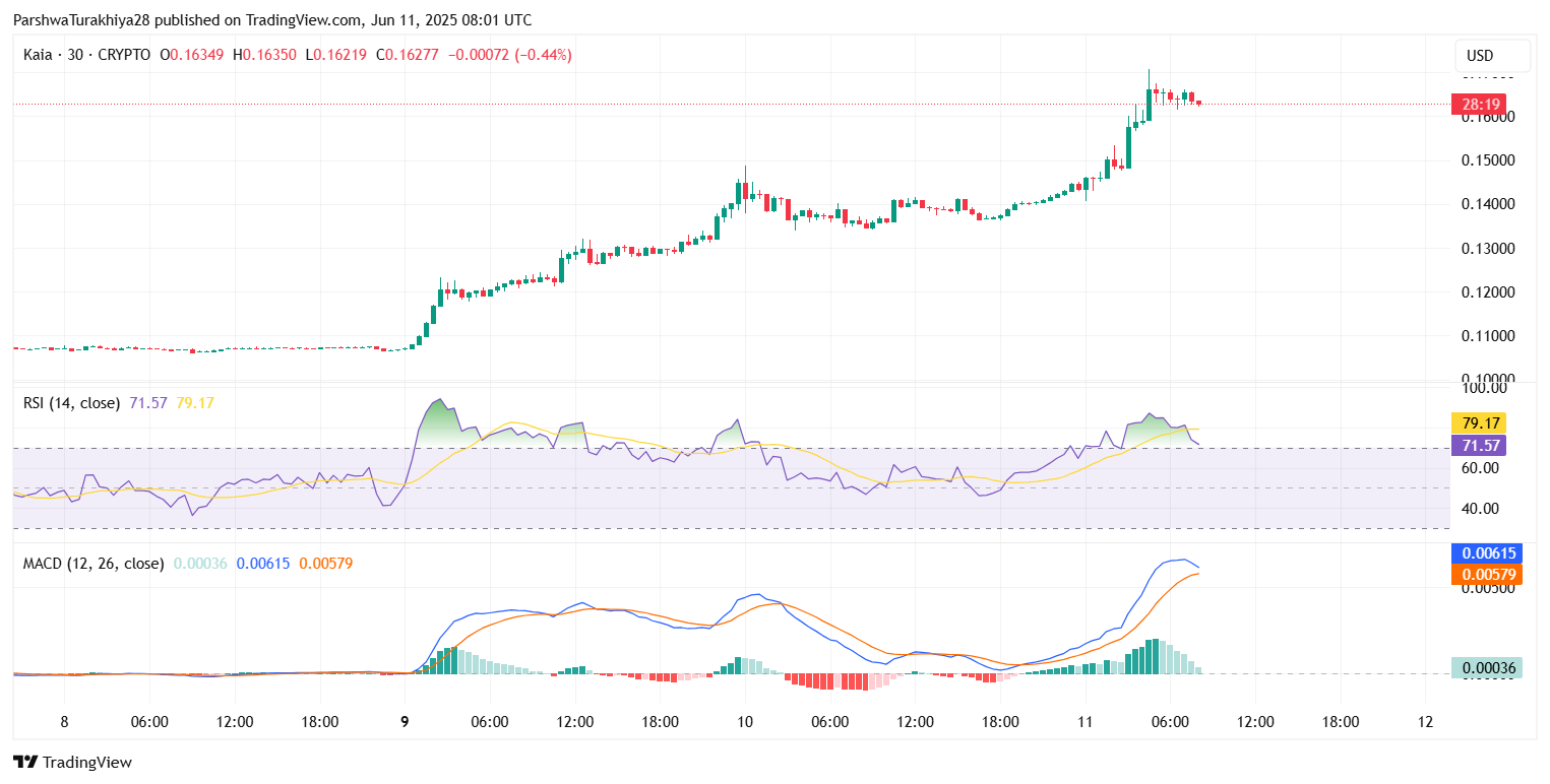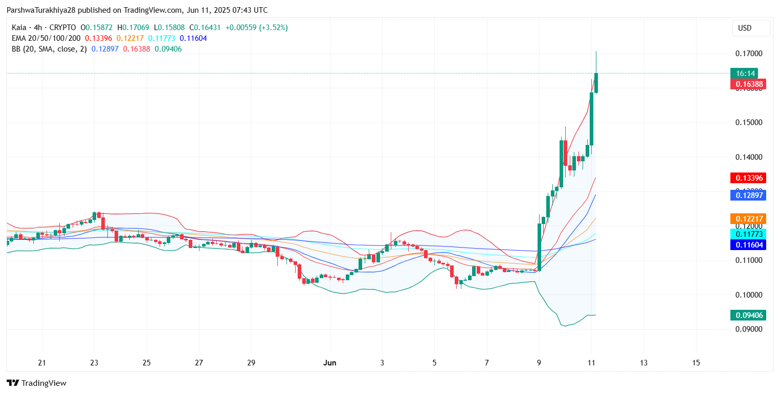 KAIA Price Prediction for June 12 2025: Can Kaia Hold Above $0.16 After Parabolic Rally?