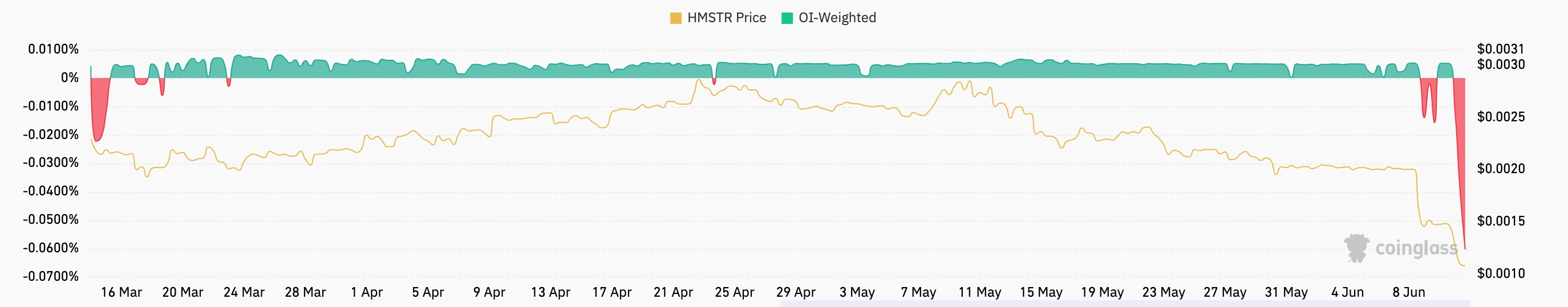 At the same time, Hamster Kombat’s funding rate sank to a record low of minus 0.06%. A negative funding rate indicates that traders are paying to maintain short positions, signaling expectations of further downside.