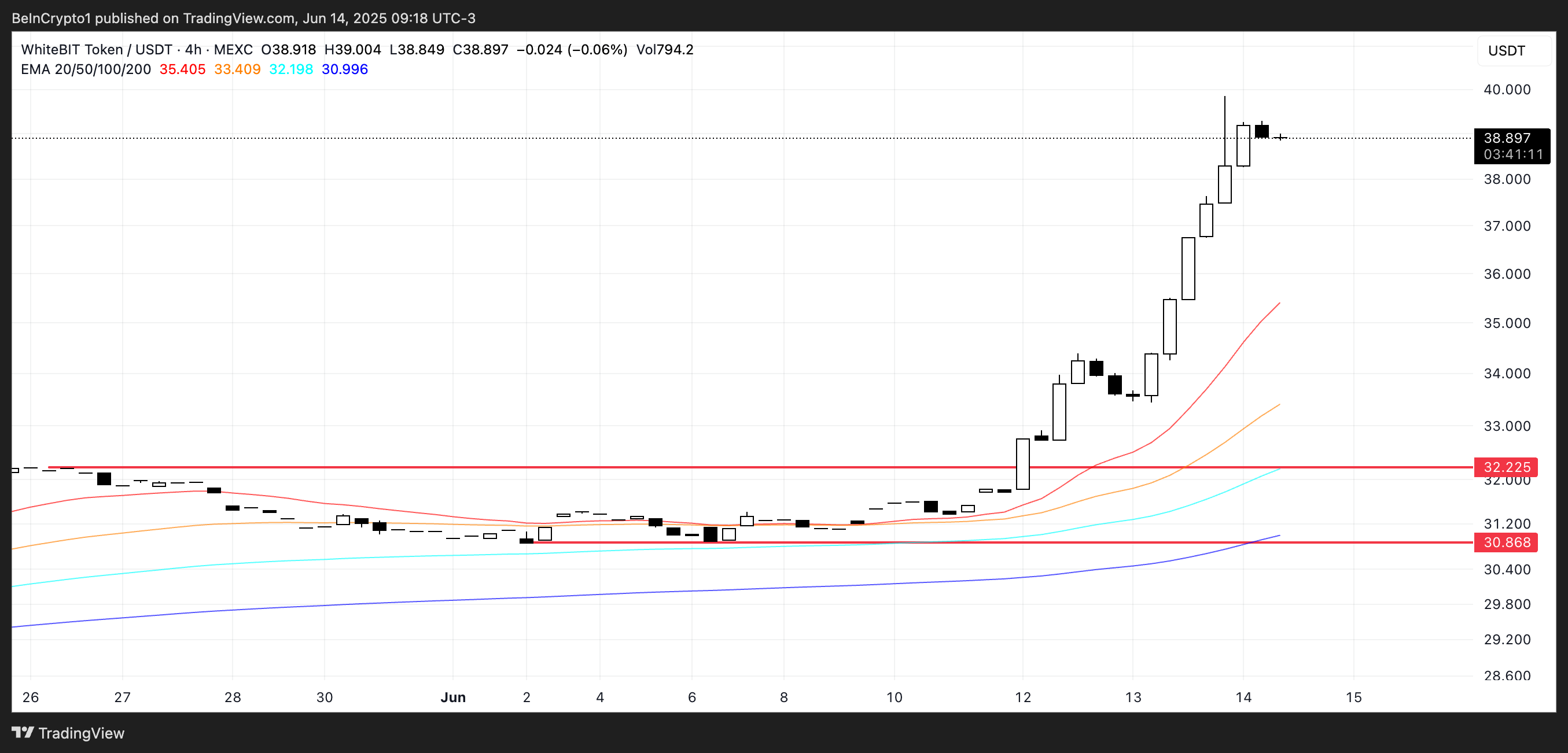 WhiteBIT Coin (WBT) defied the broader market downturn to set a new all-time high above $38, making it the top-performing coin of the day.