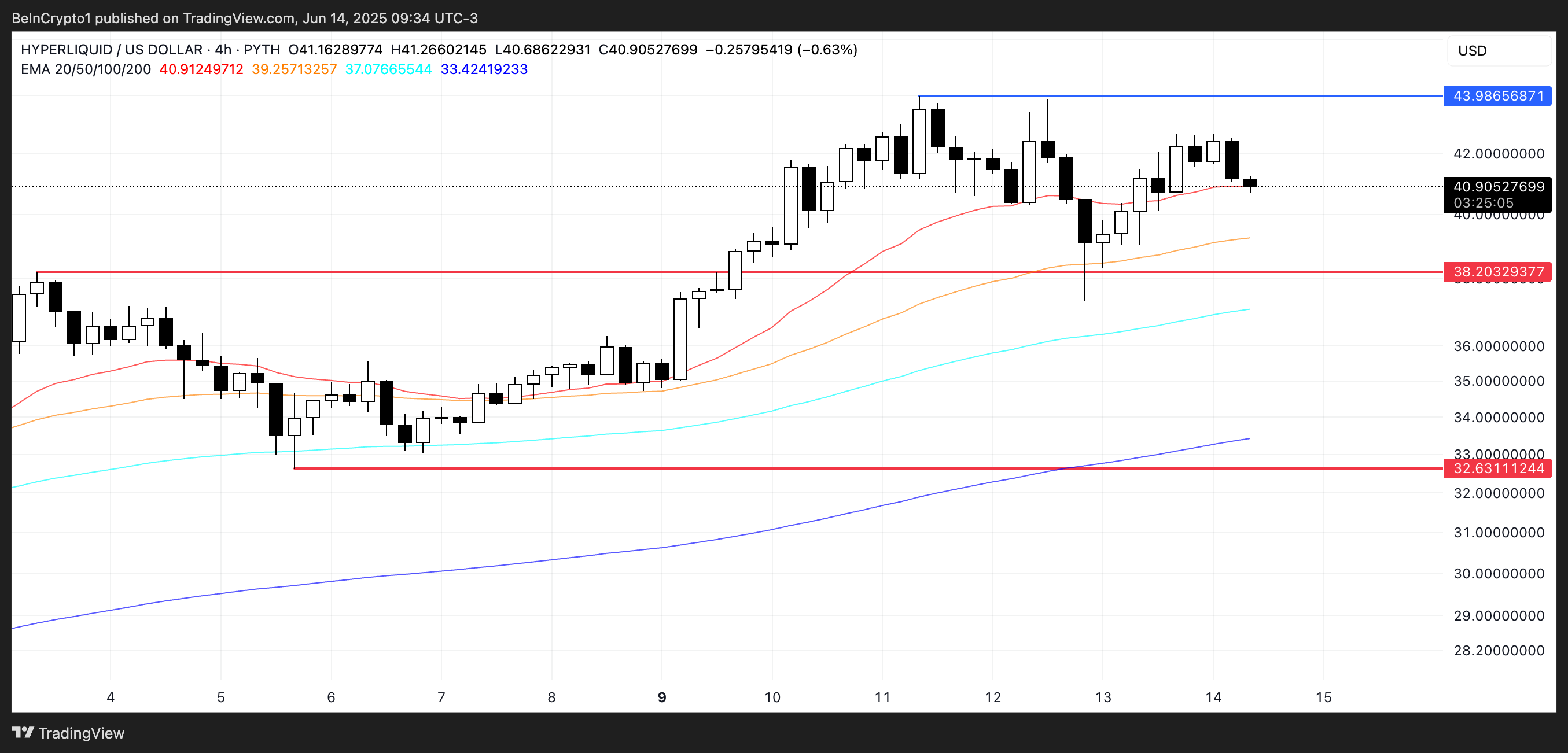 Hyperliquid’s native token, HYPE, has been trading near all-time highs over the past several days, currently hovering around $40 after briefly touching levels close to $44.