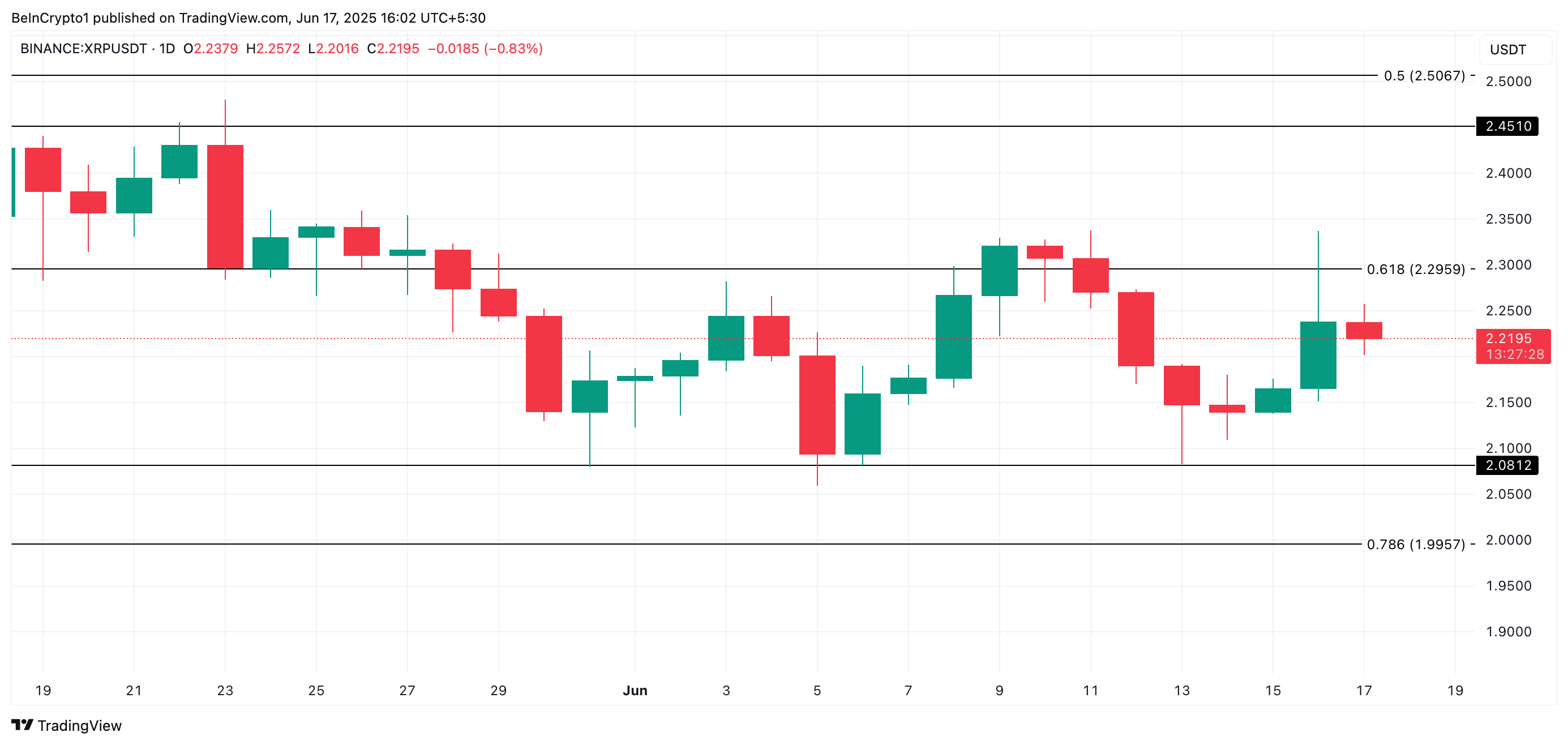 In that case, XRP could climb toward $2.29. With a successful breach of this resistance, it could potentially hit $2.45. However, if the ruling is unfavorable for Ripple, the bears could regain dominance and drag the token down to $2.08.