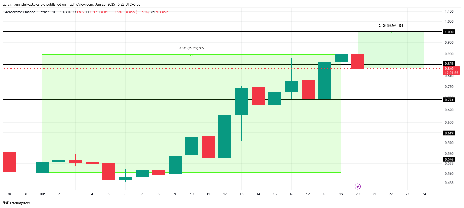 AERO has been experiencing a solid uptrend, bringing the price close to \$1. After a significant rally, the altcoin is now hovering just under the \$0.85 resistance level.
