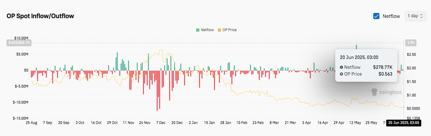 Recent capital flow data paints a nuanced picture. Between August 2024 and June 2025, OP saw fluctuating spot inflows and outflows. Interestingly, there appears to be an inverse correlation between large net inflows and price action. For instance, sharp outflows in late January 2025 coincided with steep price declines.