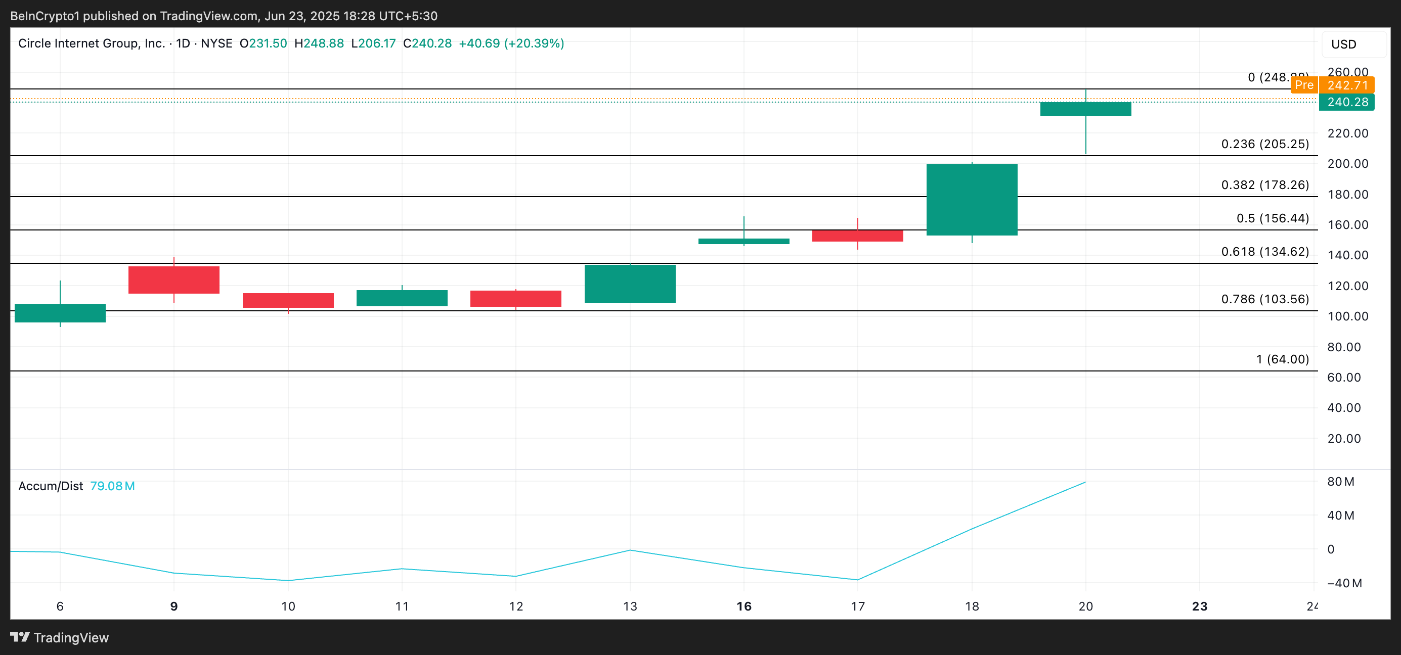 If demand for the stock continues to rise, CRCL could extend its gains toward a new all-time high.