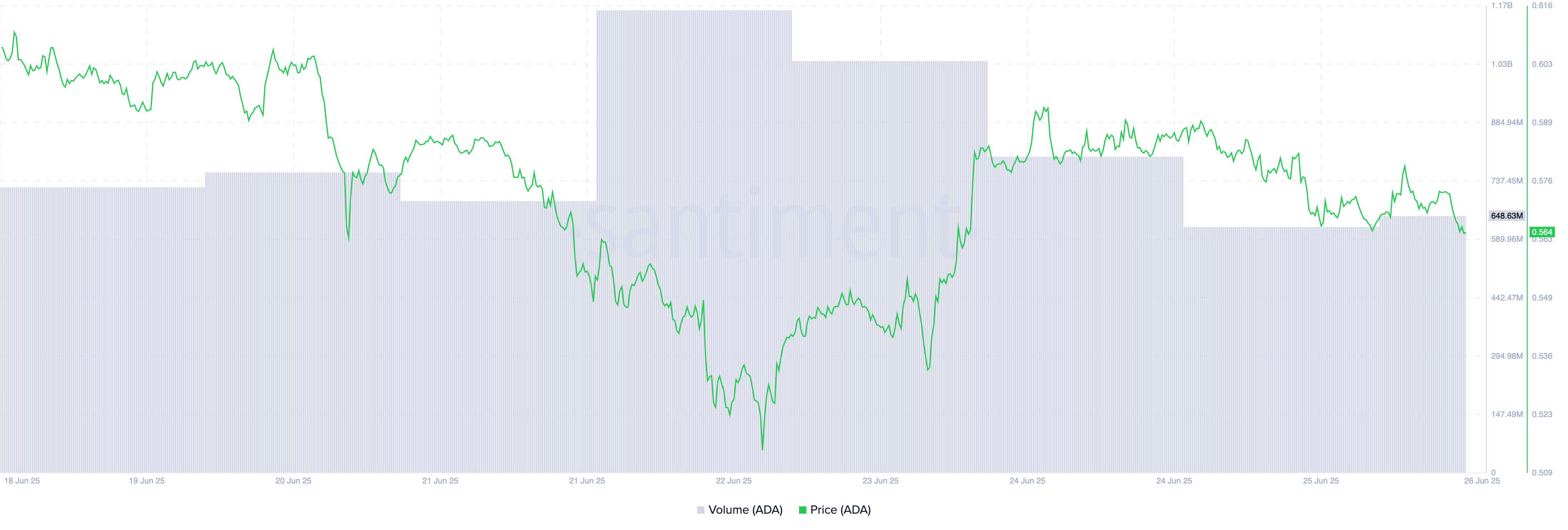 During that period, its trading volume has spiked almost 10%, confirming the climbing selling pressure. As of this writing, ADA’s daily trading volume stands at $649 million.
