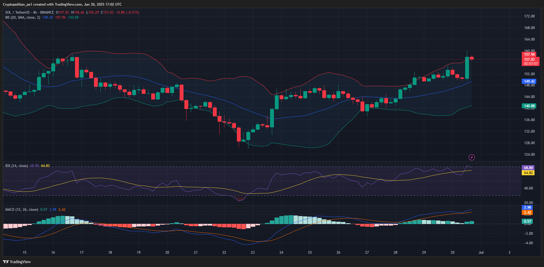 The price analysis of Solana for June 30 shows that SOL found support at the $130 price level enabling a recovery back towards the $160 price level. .