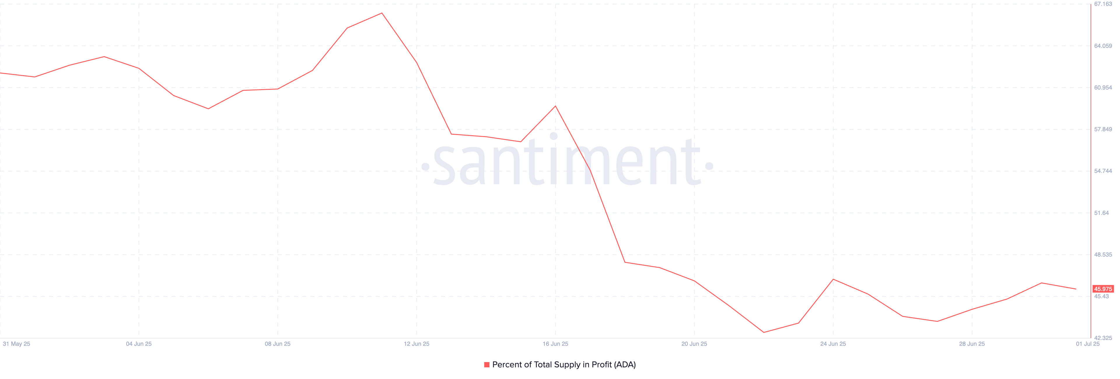 Moreover, on-chain data shows that the percentage supply of ADA in profit has continued to fall. At press time, it was 45.97%, plummeting 27% over the past month.