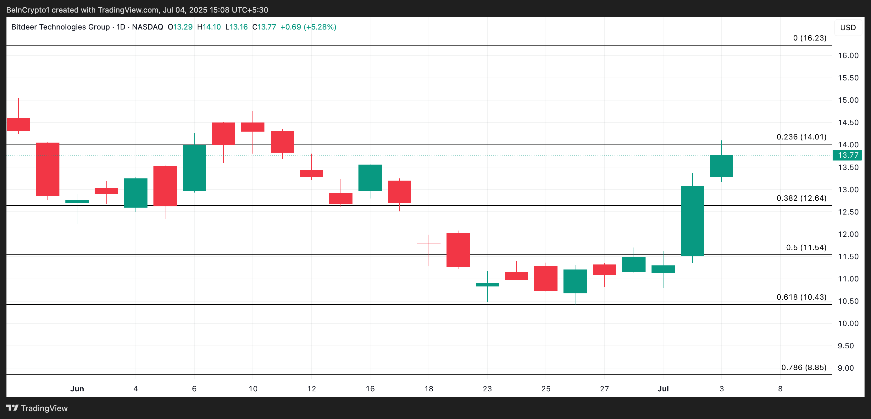 On the other hand, a dip in buying pressure could push BTDR’s price to $12.64.